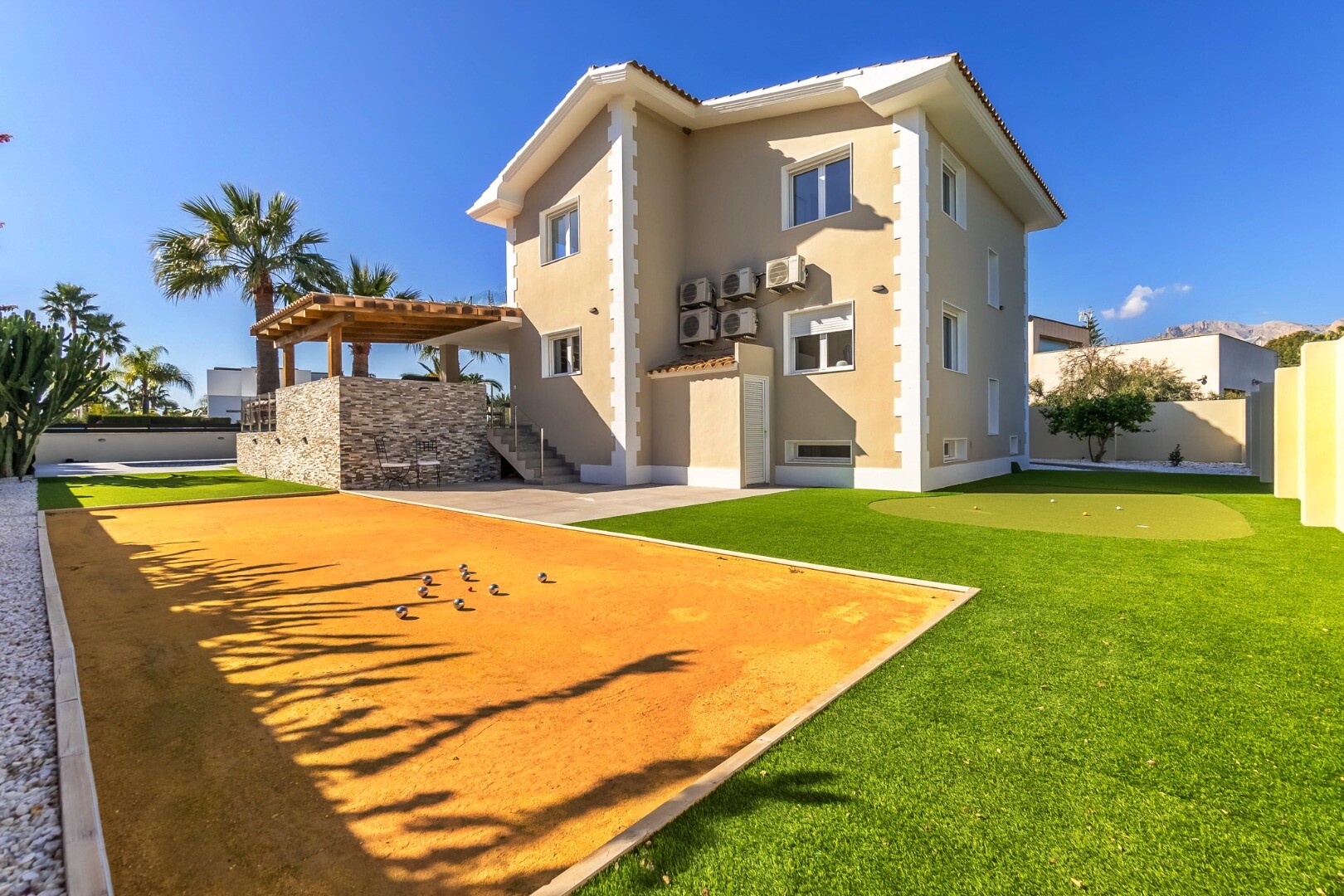 Całkowicie odnowiona w 2023 roku, ta nowoczesna willa o powierzchni 350 m² znajduje się na prywatnej działce o powierzchni 1250 m² w spokojnej dzielnicy mieszkalnej, zaledwie 10 minut od plaży i 15 minut od Benidormu. Sprzedawana w pełni umeblowana i gotowa do zamieszkania.