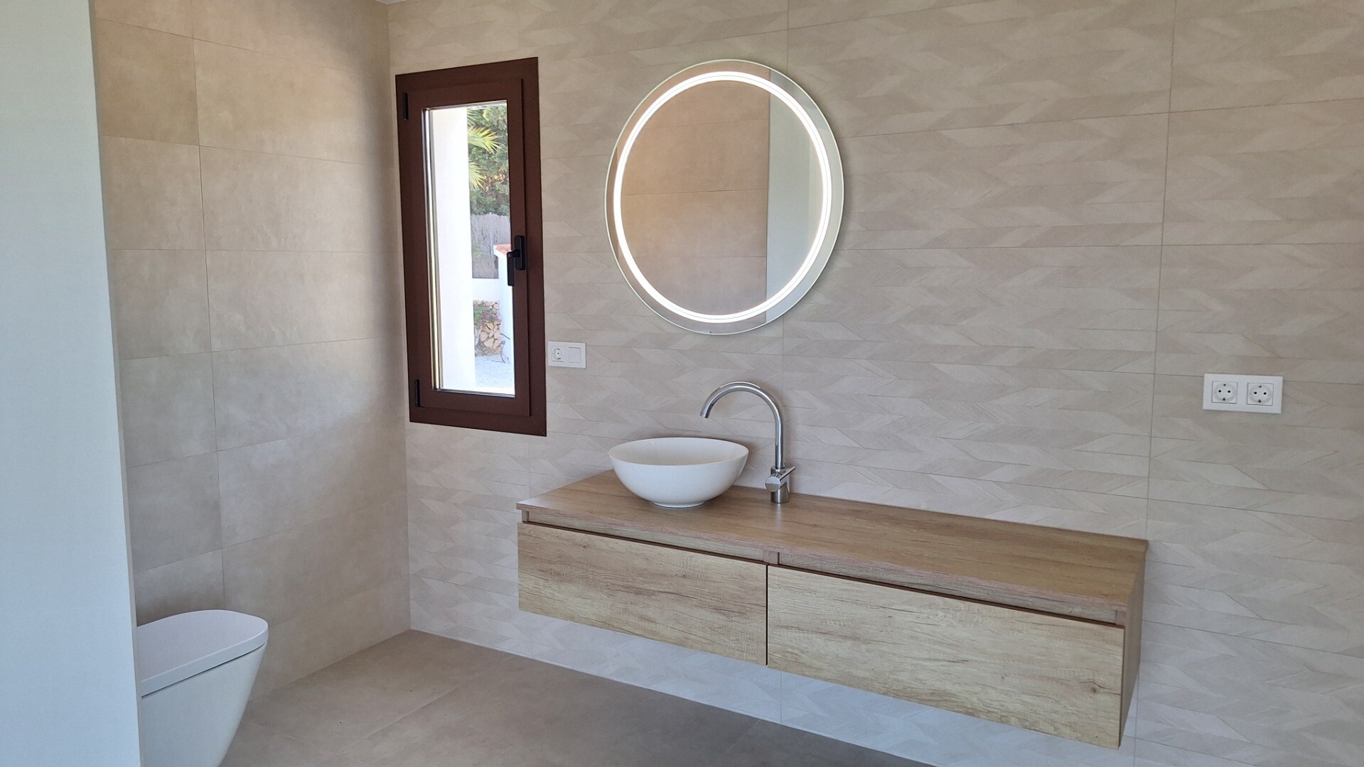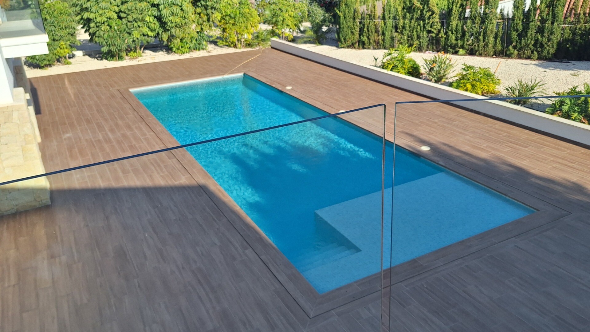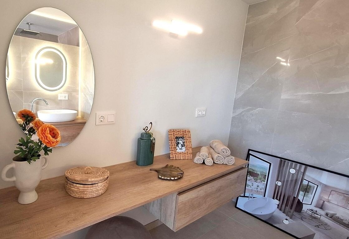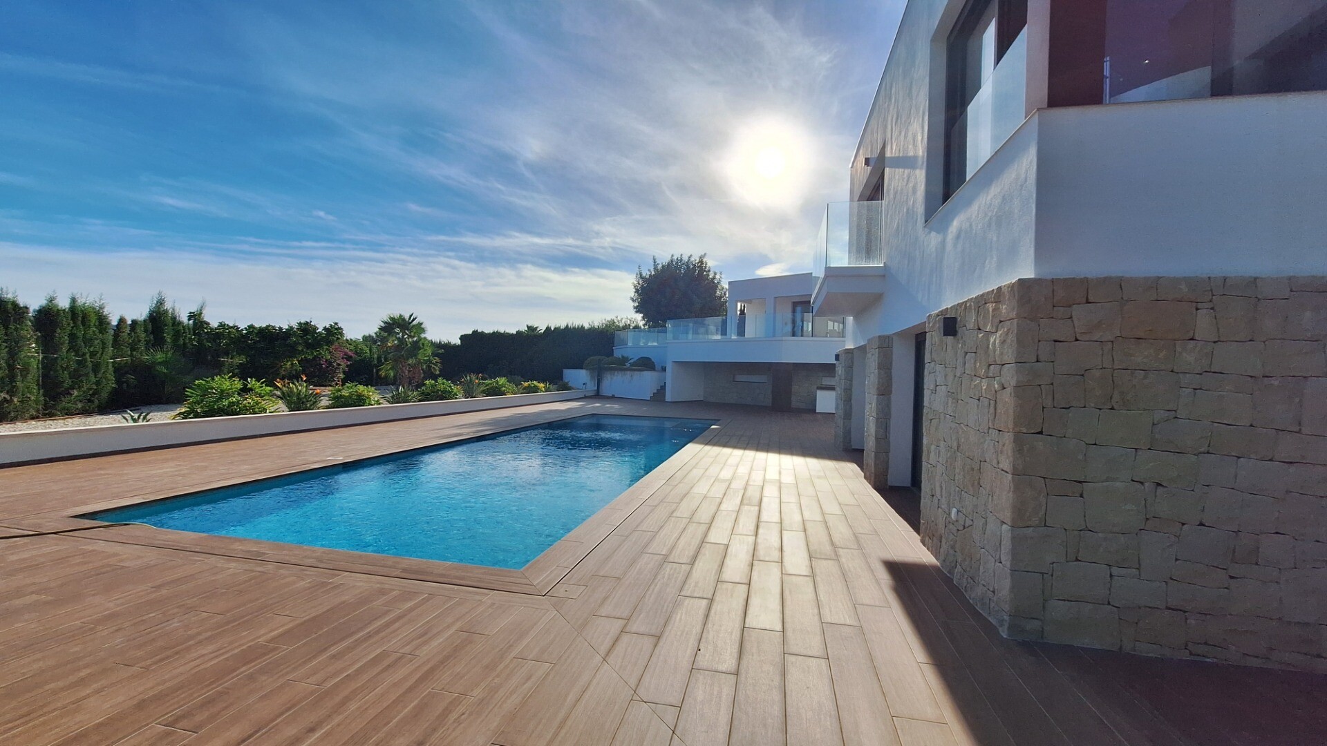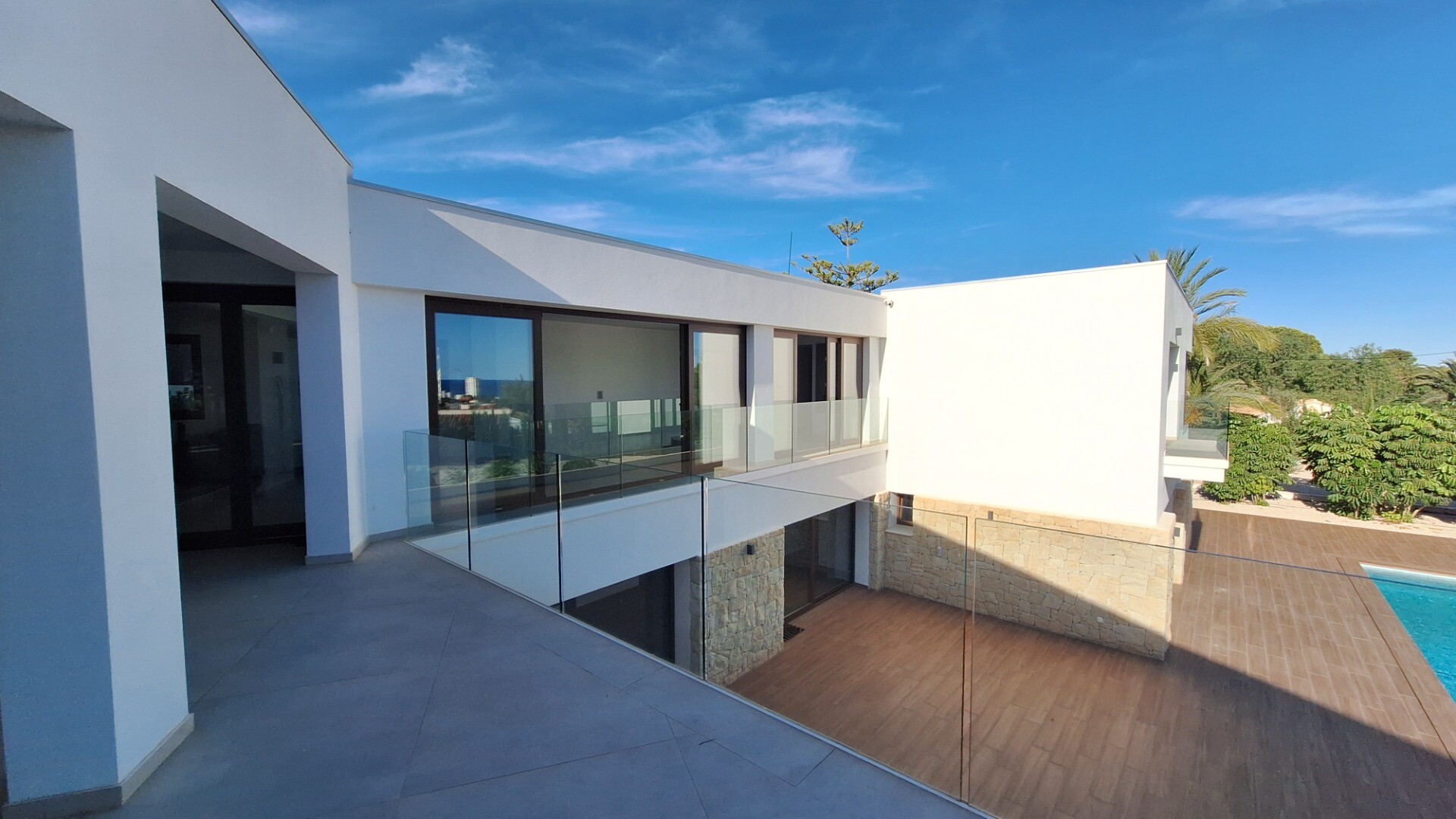Ta willa o powierzchni 510 m² wyróżnia się nowoczesnym oświetleniem, ogrzewaniem podłogowym, elektrycznymi roletami i klimatyzacją, gwarantując maksymalny komfort przez cały rok.