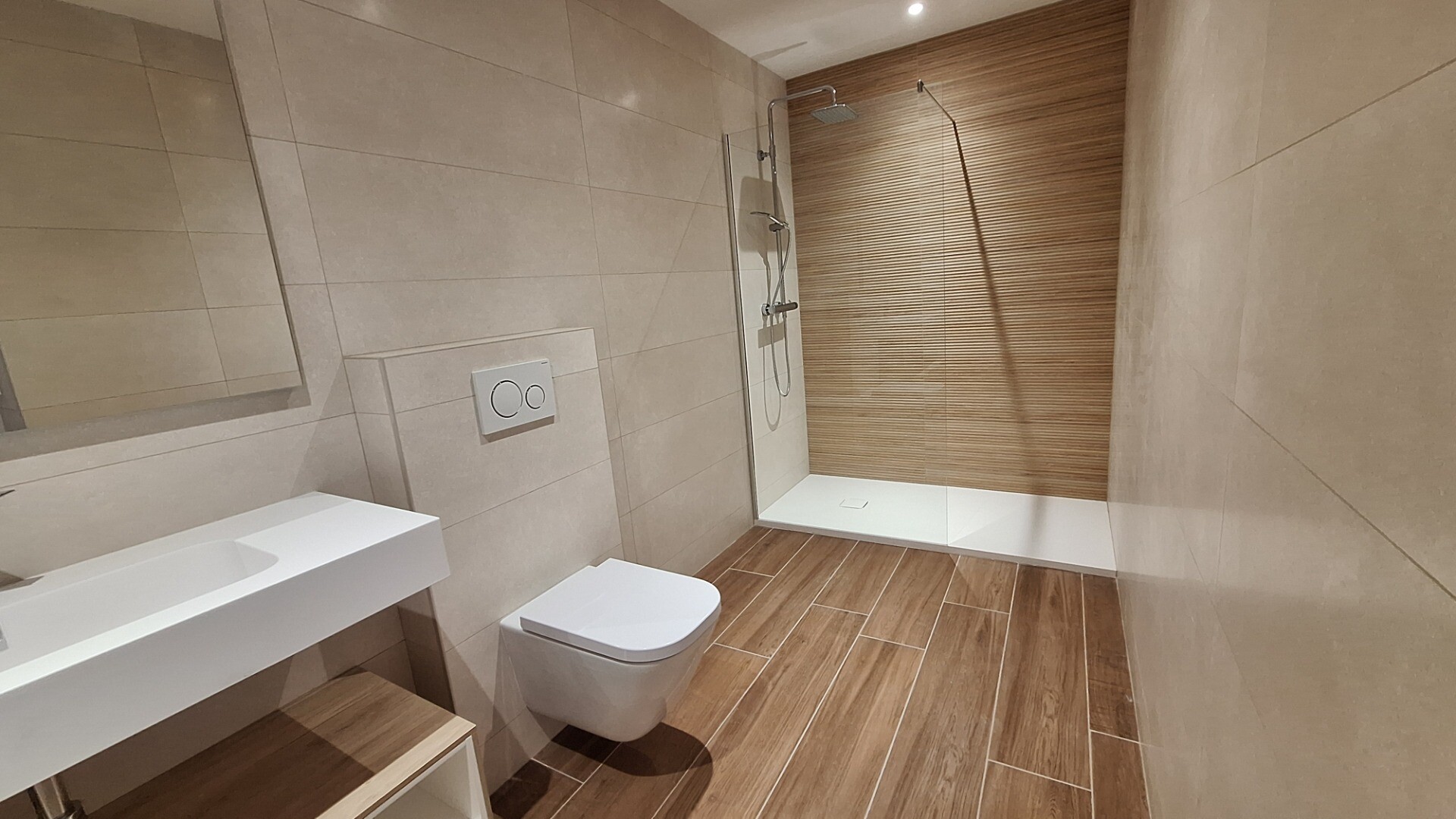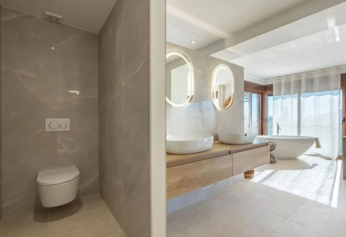 Główna sypialnia obejmuje elegancką łazienkę z wanną z pięknym widokiem i przestronnym prysznicem, podczas gdy pozostałe sypialnie oferują również bezpośredni dostęp do nowoczesnych łazienek.