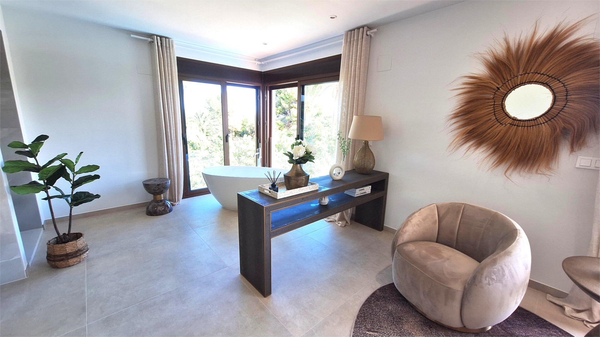 Willa posiada przestronny salon z dużymi oknami, które pozwalają cieszyć się imponującym widokiem na morze i Sierra Helada.