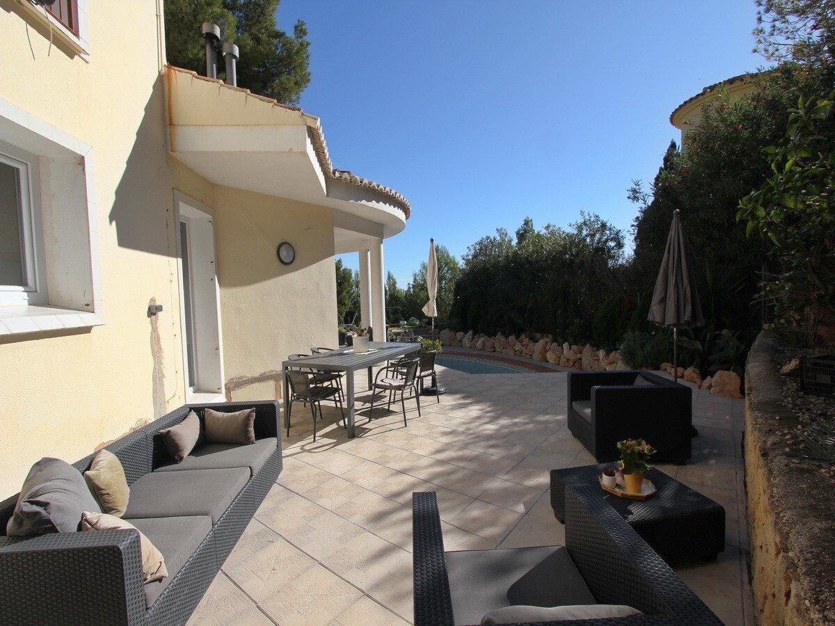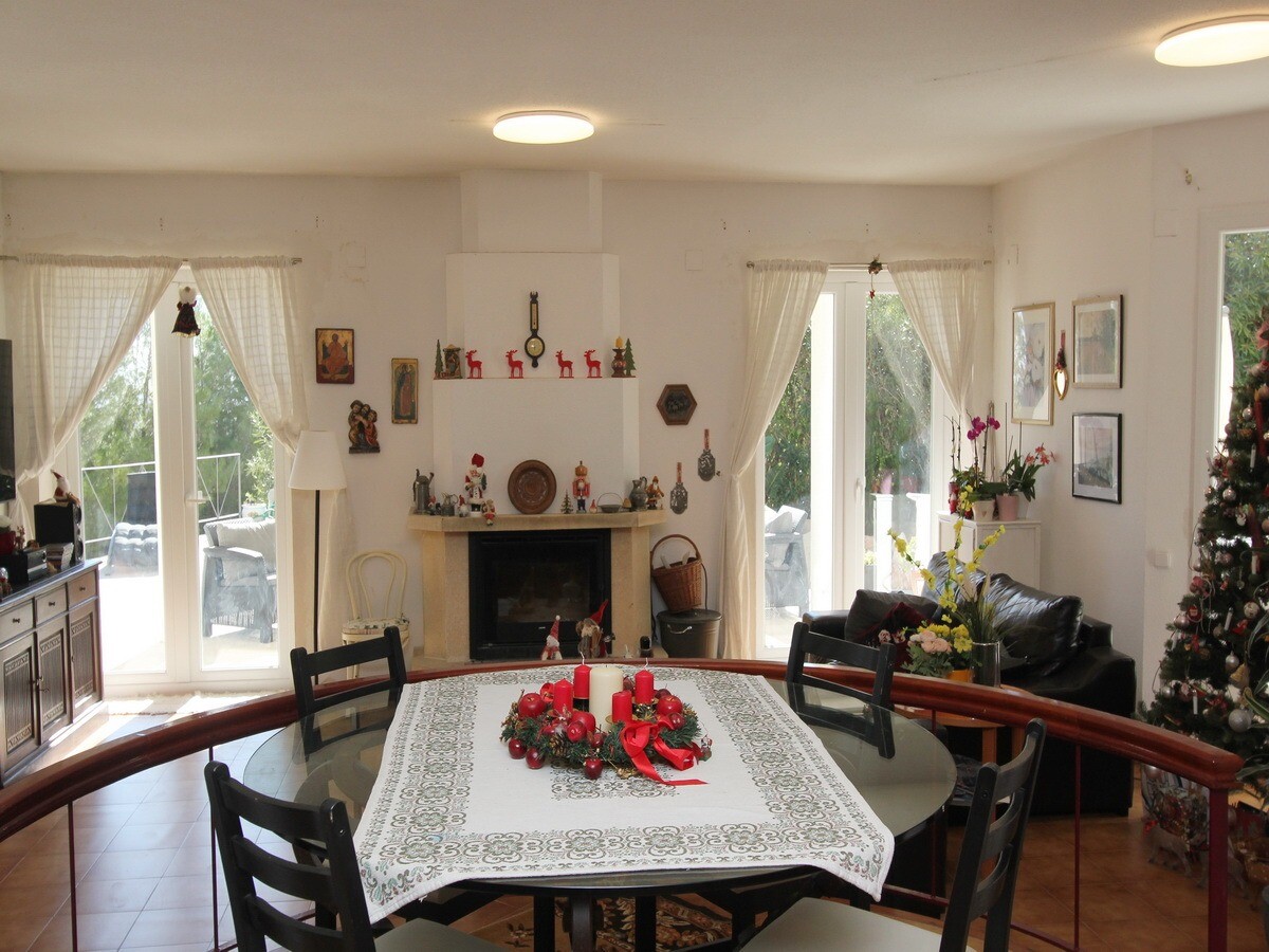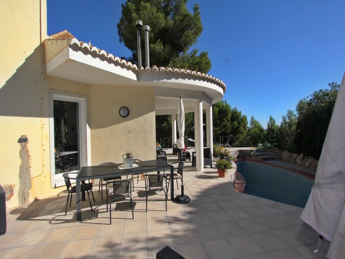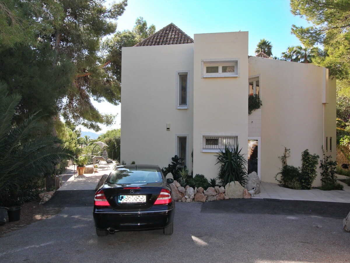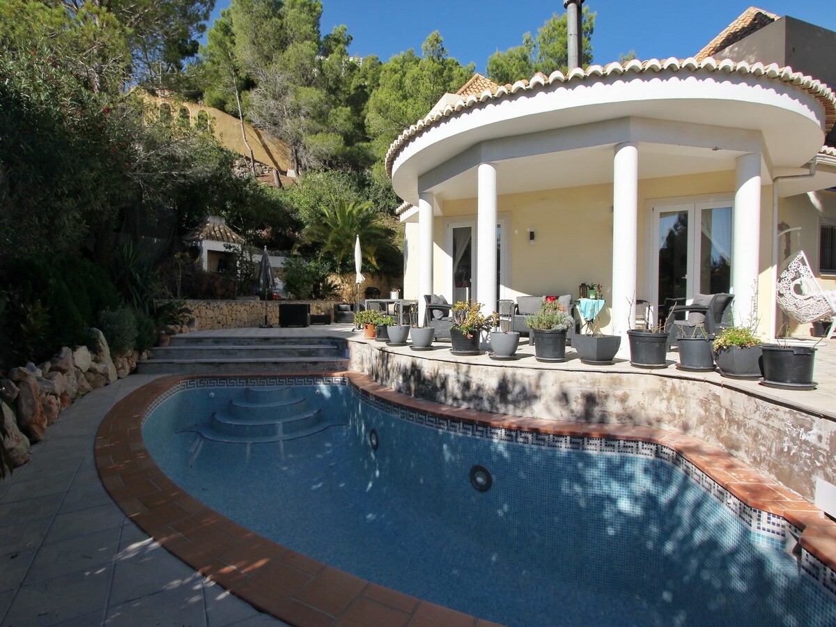 Rodzinna willa w poszukiwanej dzielnicy Santa Clara. Prywatny basen, klimatyzacja, kominek, panele słoneczne, prywatny strzeżony parking ... Bardzo prywatny i odosobniony to jednak tylko 5 minut jazdy samochodem od wiosek Altea la Vella i Altea.