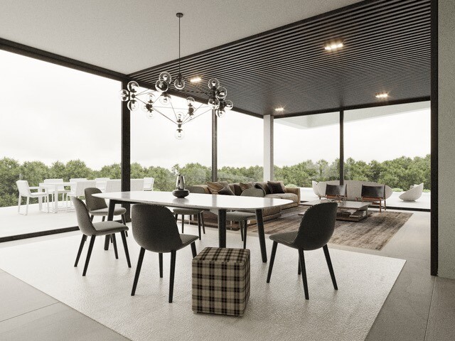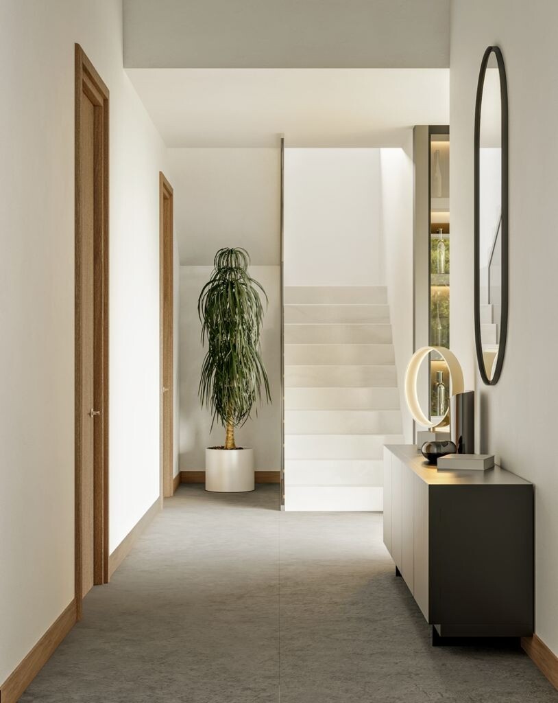 Dom ma 564 m2 zbudowany, rozmieszczone na parterze z podwójnej wysokości hali, sypialni z łazienką en suite, salon z jadalnią i 60 m2 wyposażonej kuchni z d...ostępem do tarasu; gdzie znajduje się basen i toaleta grzecznościowa. Na pierwszym piętrze znajduje się sypialnia z łazienką, o powierzchni 19 m2, oraz kolejna główna sypialnia z łazienką (z prysznicem i wanną) i garderobą, o powierzchni 55 m2.