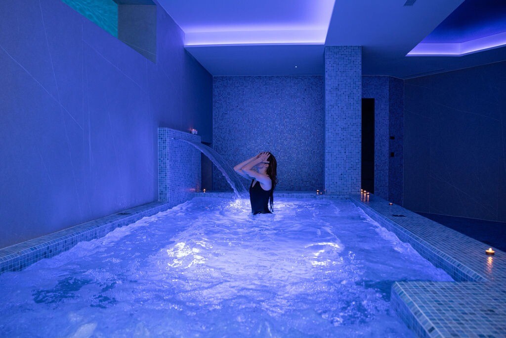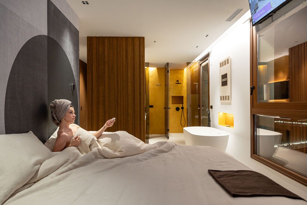 Jednym z najbardziej charakterystycznych elementów jest nacisk na dobrostan: willa obejmuje prywatne spa z podgrzewanym basenem, sauną i strefą relaksu, a także zewnętrzny basen typu infinity, który wizualnie łączy się z morzem.