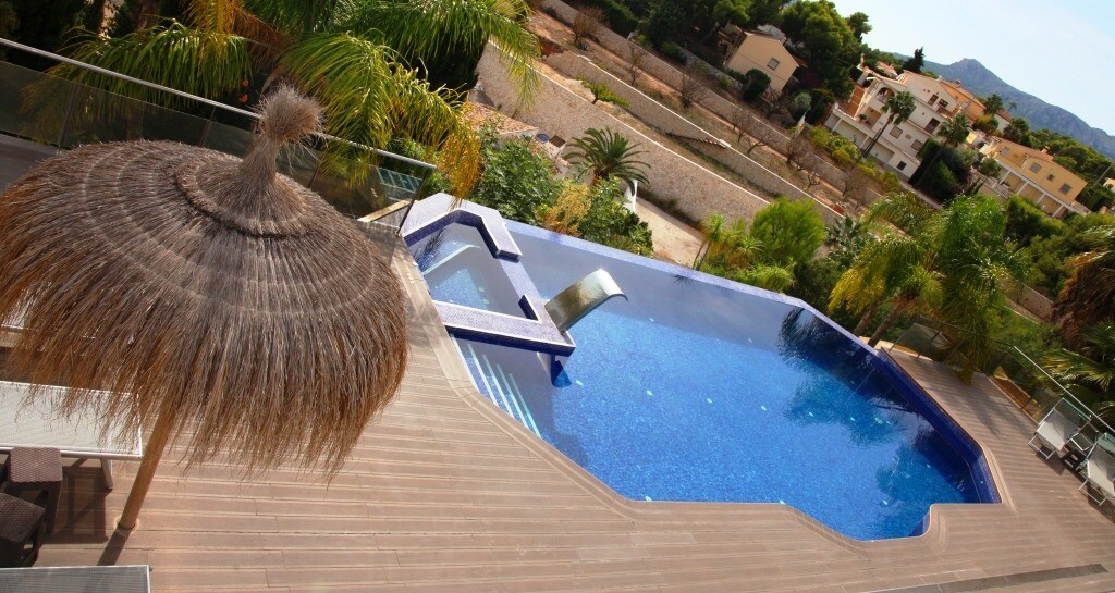 Nie tylko oszałamiające wnętrze, ale także elementy zewnętrzne definiują luksus w tej nieruchomości. Piękny ogród otacza willę, otaczając prywatny basen z jacuzzi i uroczym wodospadem. Stąd rozciągają się widoki na rozległe Morze Śródziemne.