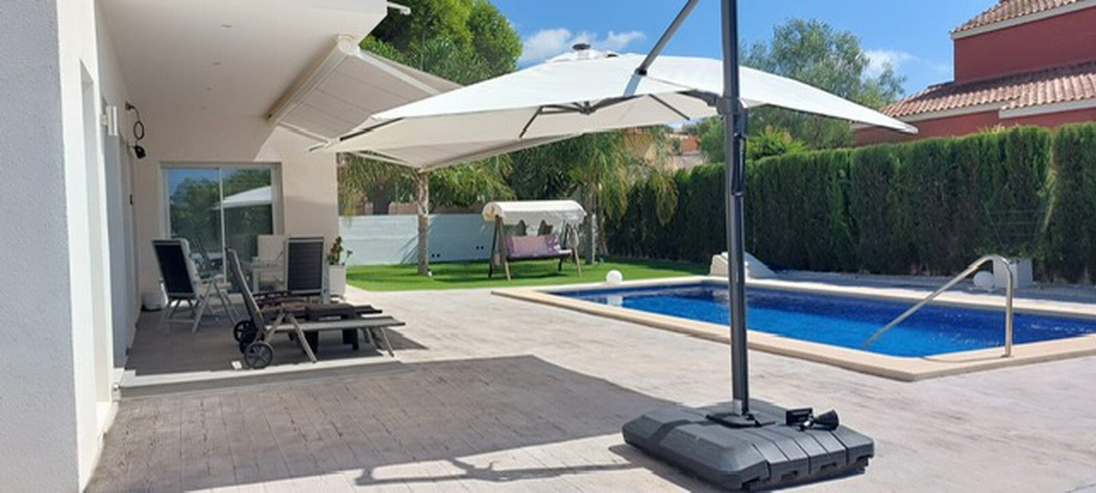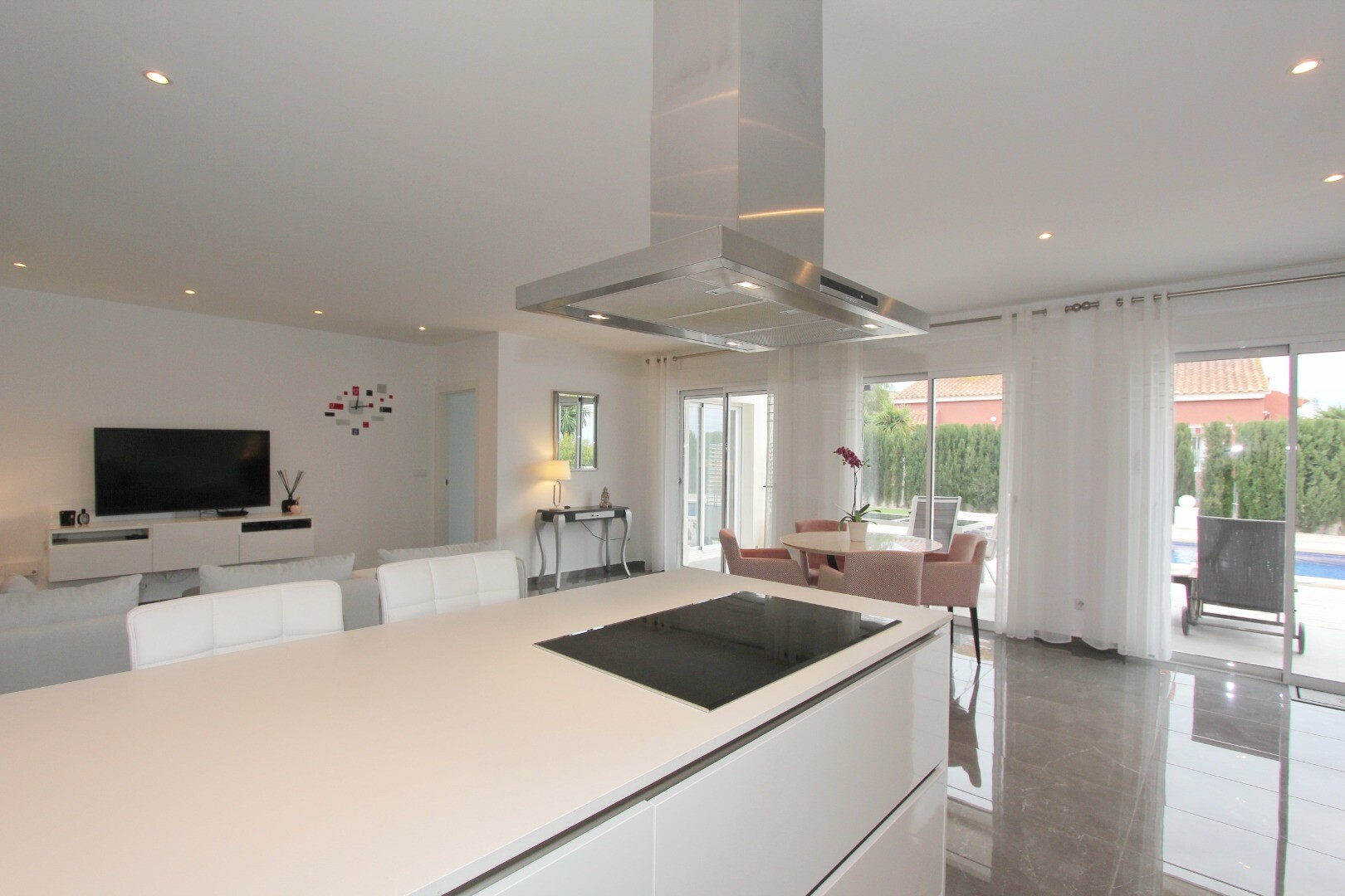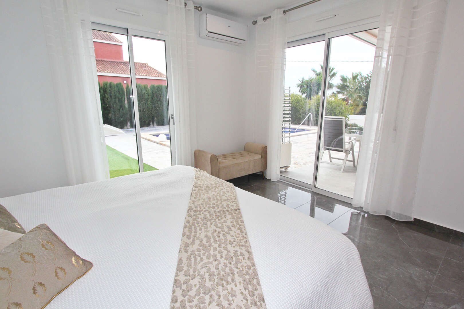 Witamy w wiejskim sanktuarium! Ta stylowa willa na jednym poziomie szczyci się eleganckimi, nowoczesnymi wykończeniami i mnóstwem naturalnego światła, które wpada przez duże okna od podłogi do sufitu. Rozkoszuj się kuchnią dla smakoszy, rajem dla początkujących kucharzy, i delektuj się poranną kawą na prywatnym tarasie przy basenie, gdzie przed Two...imi oczami rozciąga się widok na ogród i basen. Ta prywatna willa, położona w wiejskiej osadzie, jest Twoją bramą do spokojnego stylu życia, otoczona własnym dużym ogrodem z bujną roślinnością i drzewami owocowymi, idealnym miejscem na kolację „na świeżym powietrzu” lub popijanie koktajli przy basenie! Miasto Mutxamel jest oddalone zaledwie o 7 minut jazdy samochodem, a plaża o 10 minut. Mutxamel i Busot mają w sobie tętniącą życiem „hiszpańską wioskę” i mogą pochwalić się wieloma lokalnymi sklepami rzemieślniczymi, markowymi supermarketami i cotygodniowymi targami owoców i warzyw!.
