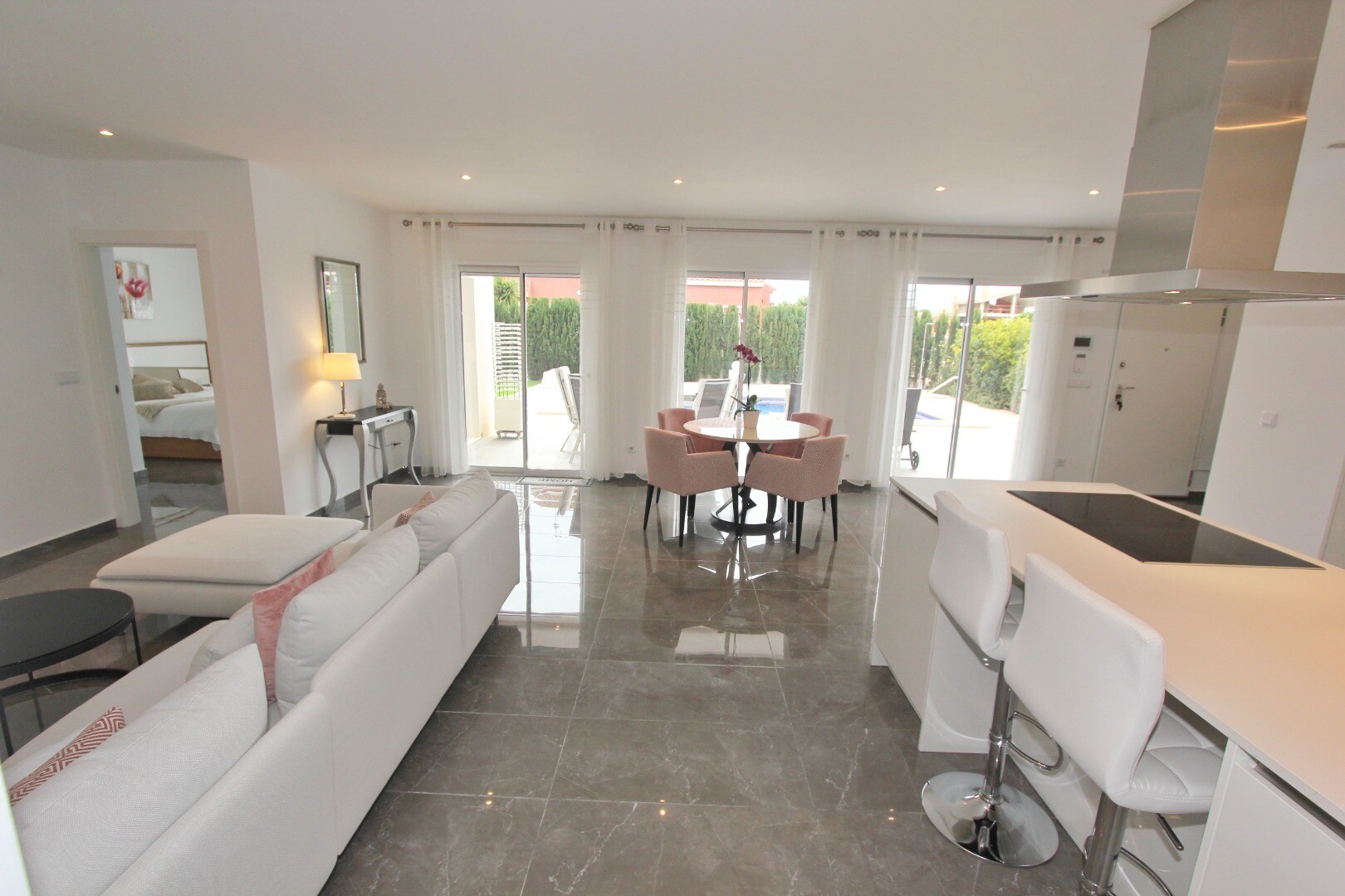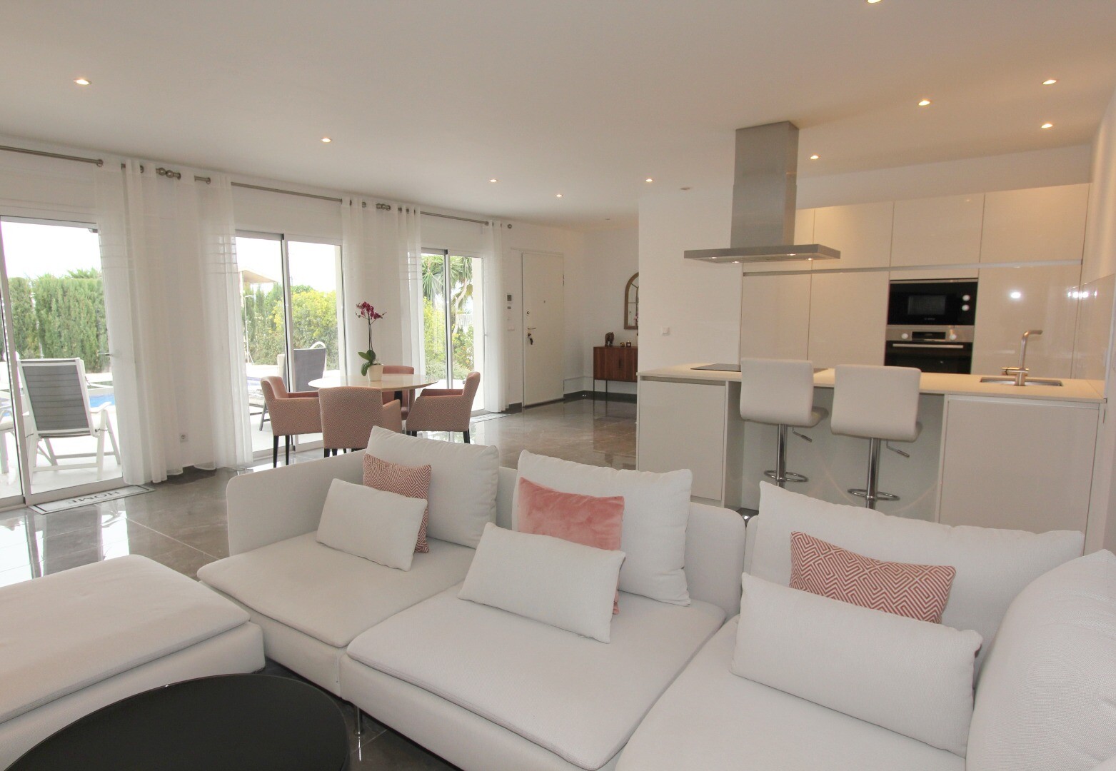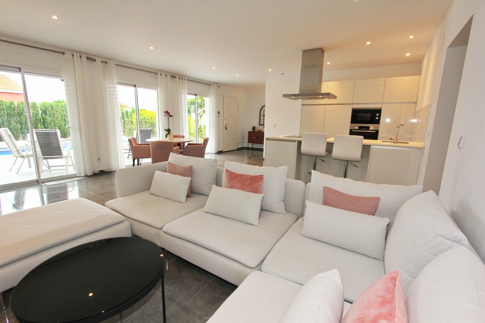 Witamy w wiejskim sanktuarium! Ta stylowa willa na jednym poziomie szczyci się eleganckimi, nowoczesnymi wykończeniami i mnóstwem naturalnego światła, które wpada przez duże okna od podłogi do sufitu. Rozkoszuj się kuchnią dla smakoszy, rajem dla początkujących kucharzy, i delektuj się poranną kawą na prywatnym tarasie przy basenie, gdzie przed Two...imi oczami rozciąga się widok na ogród i basen. Ta prywatna willa, położona w wiejskiej osadzie, jest Twoją bramą do spokojnego stylu życia, otoczona własnym dużym ogrodem z bujną roślinnością i drzewami owocowymi, idealnym miejscem na kolację „na świeżym powietrzu” lub popijanie koktajli przy basenie! Miasto Mutxamel jest oddalone zaledwie o 7 minut jazdy samochodem, a plaża o 10 minut. Mutxamel i Busot mają w sobie tętniącą życiem „hiszpańską wioskę” i mogą pochwalić się wieloma lokalnymi sklepami rzemieślniczymi, markowymi supermarketami i cotygodniowymi targami owoców i warzyw!.