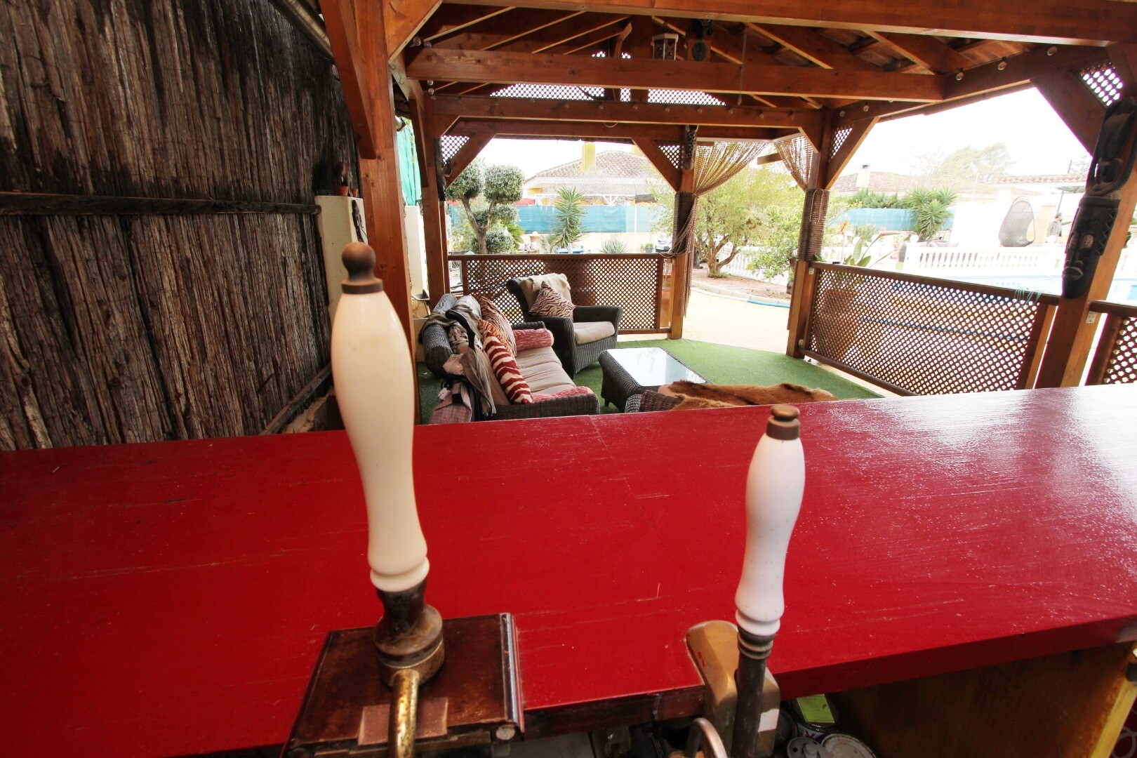 *Drewniana strefa chillout z barem