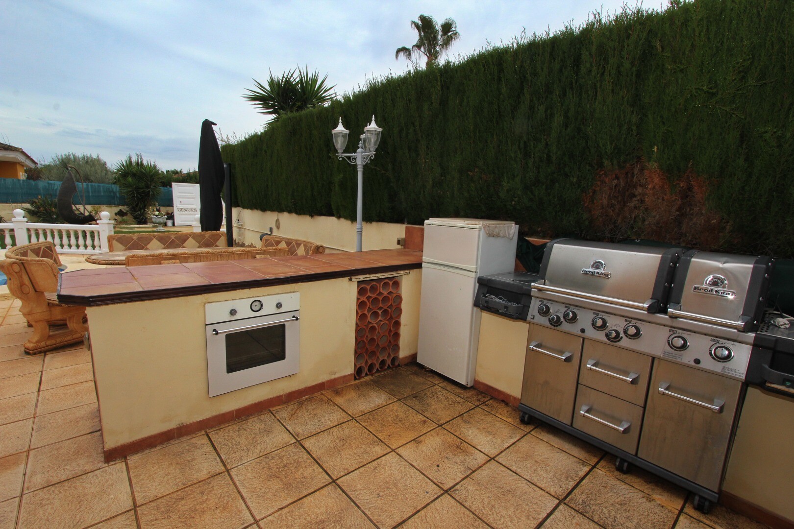 *W pełni wyposażona kuchnia letnia z grillem, piecem do pizzy, piecem konwencjonalnym i lodówką