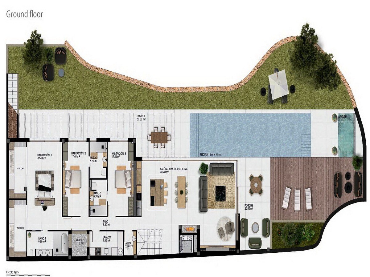 Kompleks 11 wyjątkowych i różnych willi, z niezależnymi działkami o powierzchni do 622 m2, o łącznej powierzchni zabudowy do 422 m2 i prywatnym basenem.