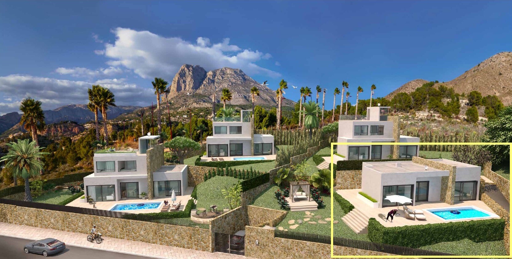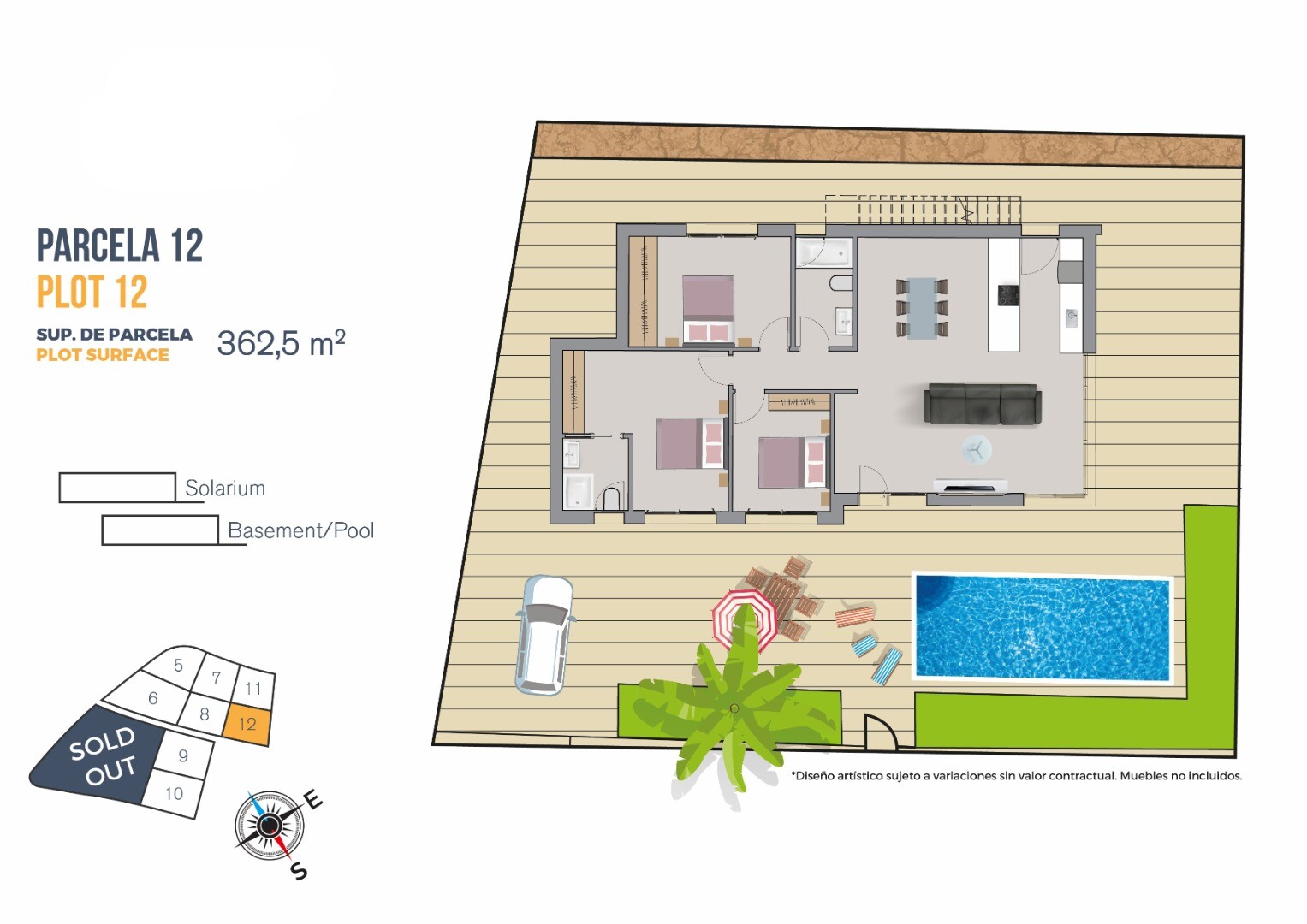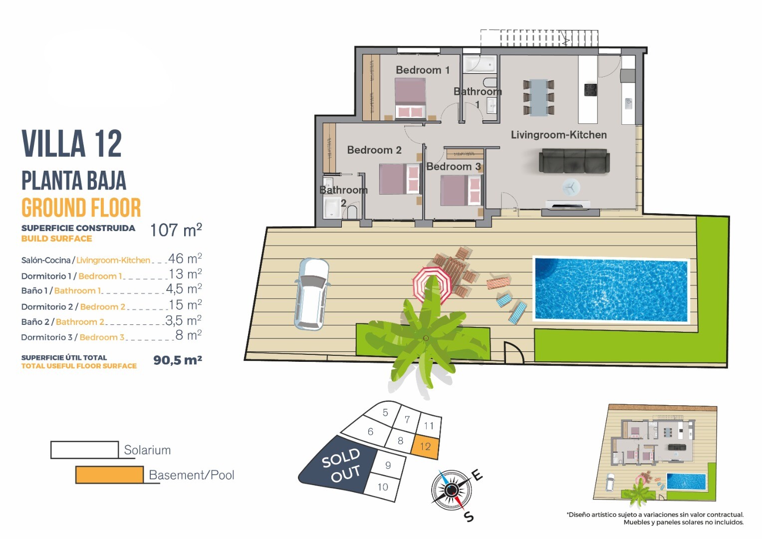 Ta, skierowana na południowy wschód, parterowa willa oferuje 3 sypialnie i 2 łazienki. Posiada salon z jadalnią o powierzchni 46 m² z widokiem na basen. Na terenie posesji dostępny jest parking, basen o wymiarach 6x3 m oraz możliwość zbudowania grilla/kuchni na świeżym powietrzu. Dom posiada preinstalowaną klimatyzację z kanałami wentylacyjnymi. Zd...jęcia na naszej stronie internetowej przedstawiają dom pokazowy, gdzie można docenić jakość wykończenia.