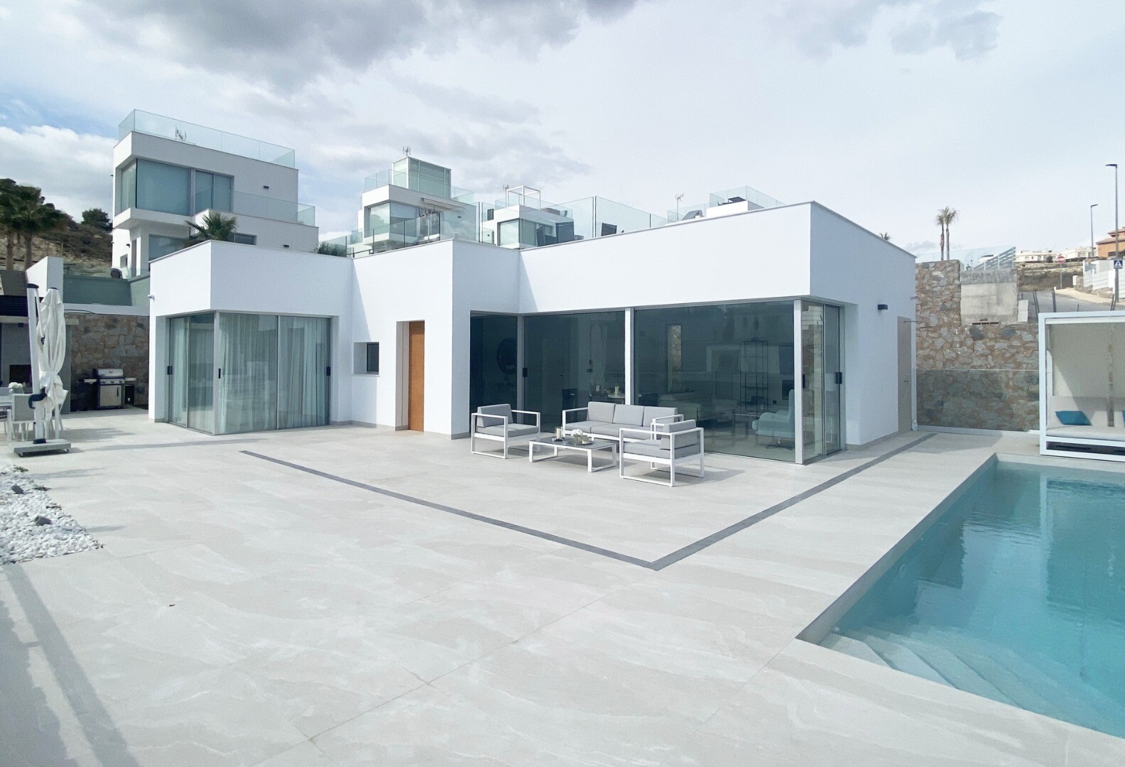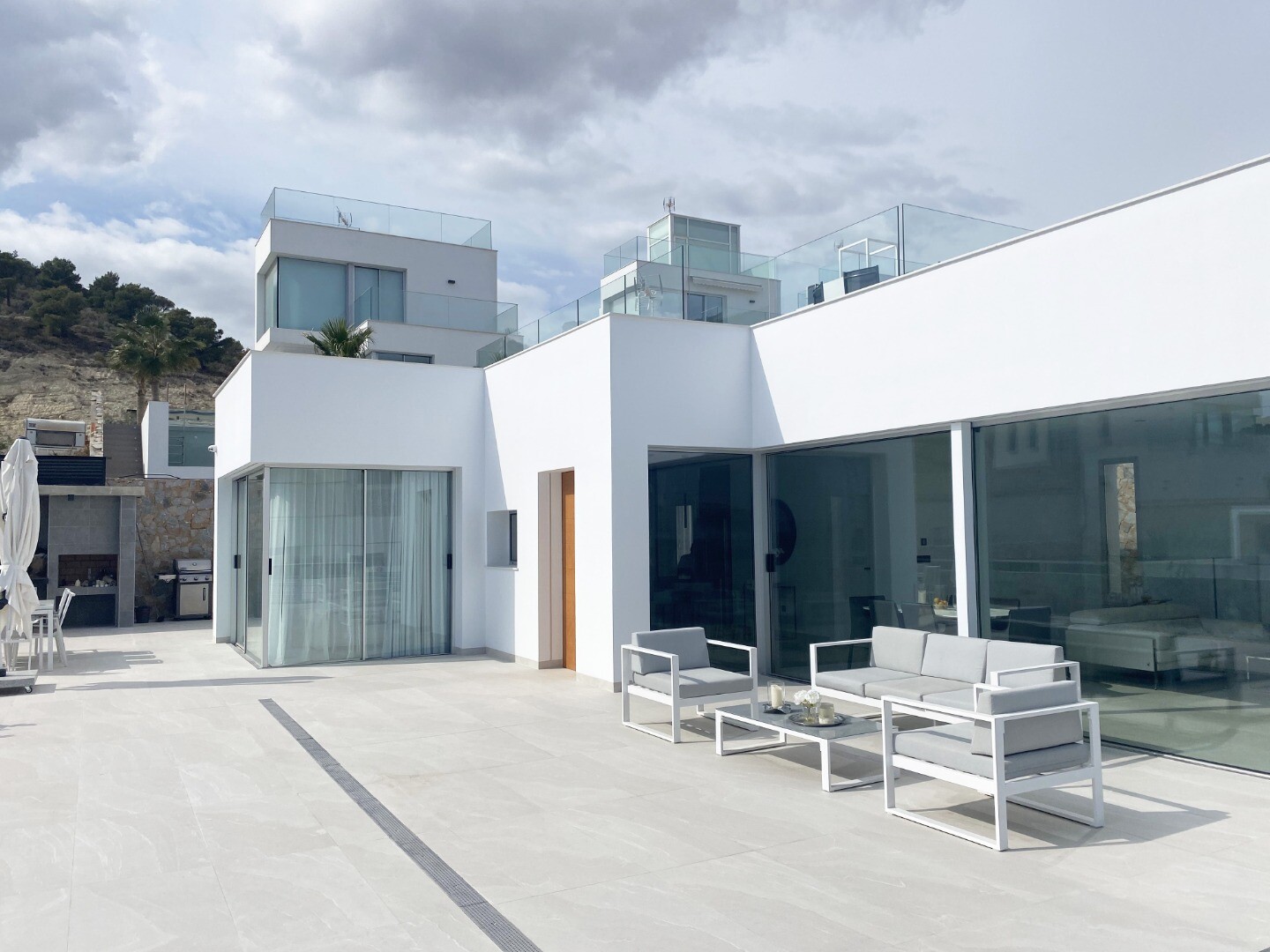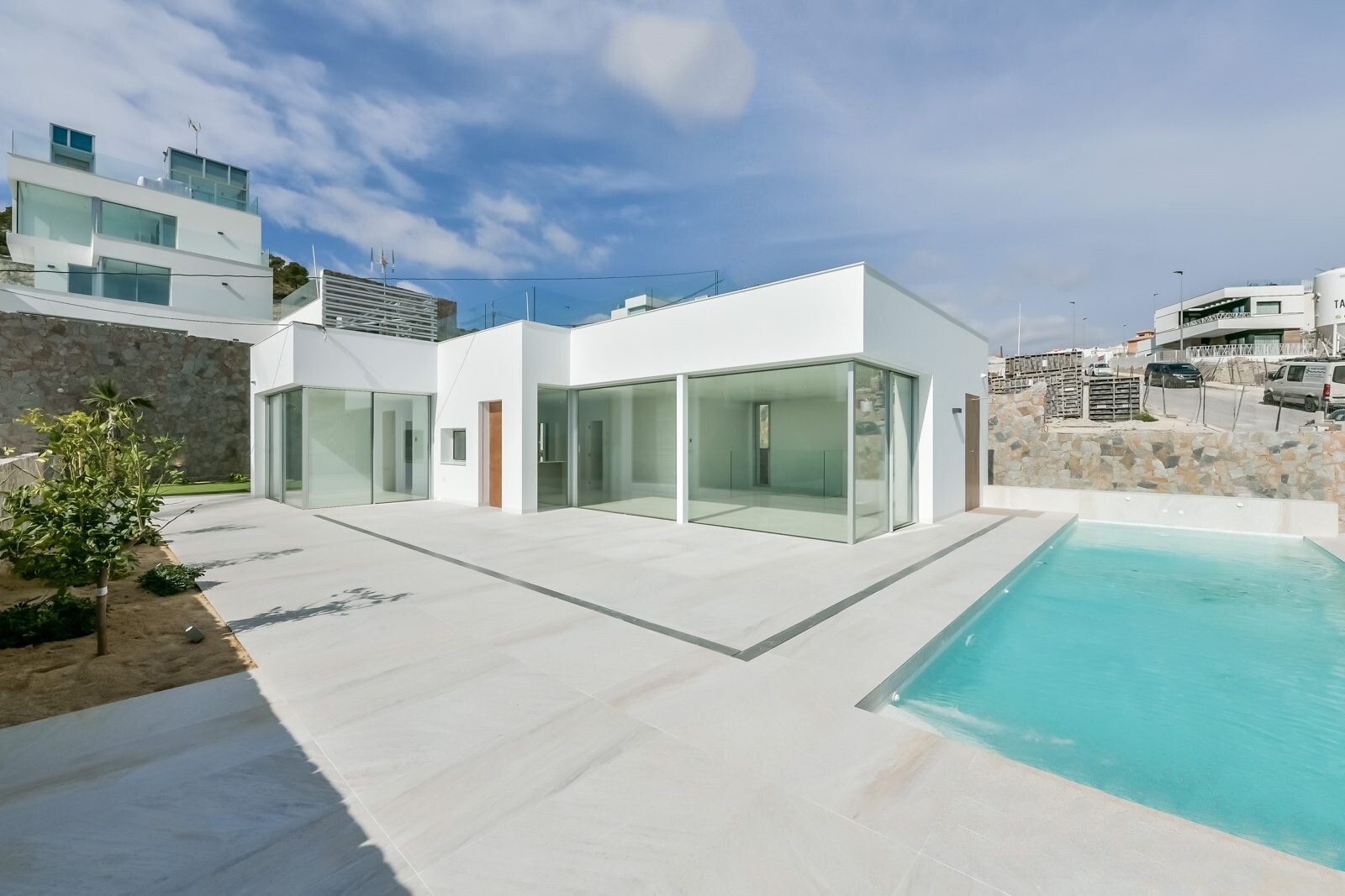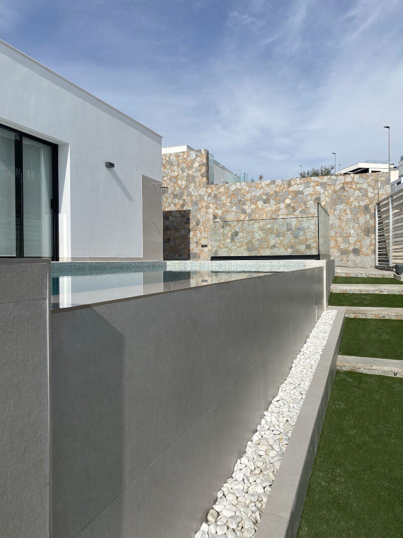 Uprzywilejowane środowisko i tylko 5 km od morza. Projekt łączący widok na morze, światło i specjalny projekt oparty na prostych liniach, jasnych kolorach wykończenia i dużych oknach. Willa typu P-2: Piwnica podzielona jest na 2 sypialnie, 1 łazienkę i część wielofunkcyjną (salon, kino, siłownia). Parter składa się z kuchni-salonu o powierzchni ok.... 44 m2. z dostępem do tarasu, 3 dwuosobowe sypialnie i 2 pełne łazienki (1 z łazienką). Zawiera również basen, ogród z drzewami, altanę i parking na 2 samochody.