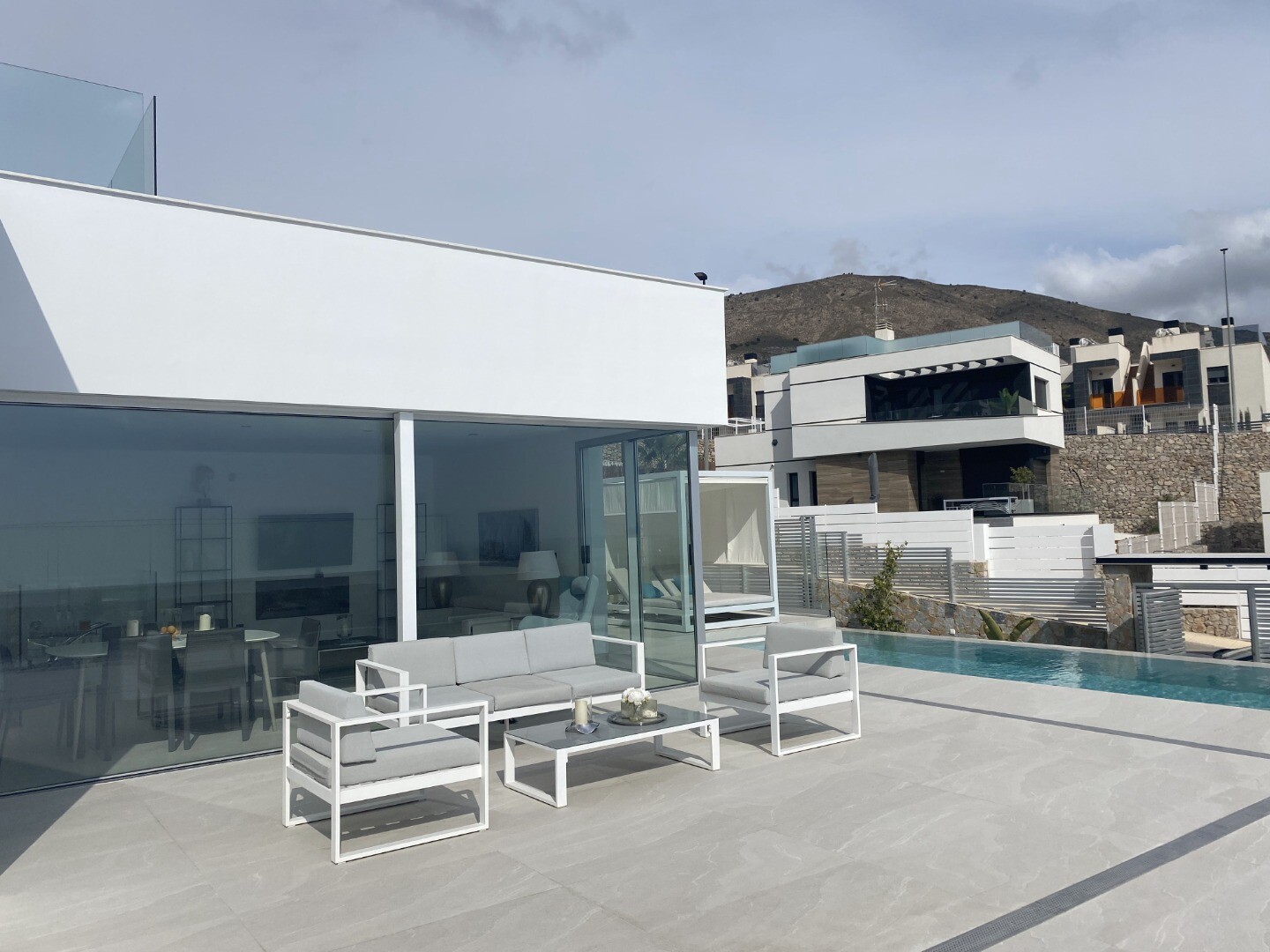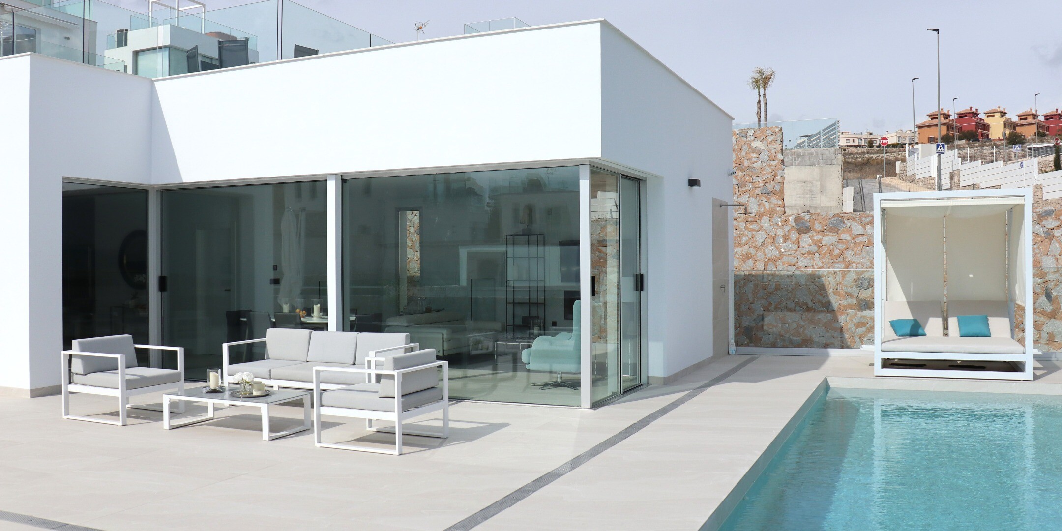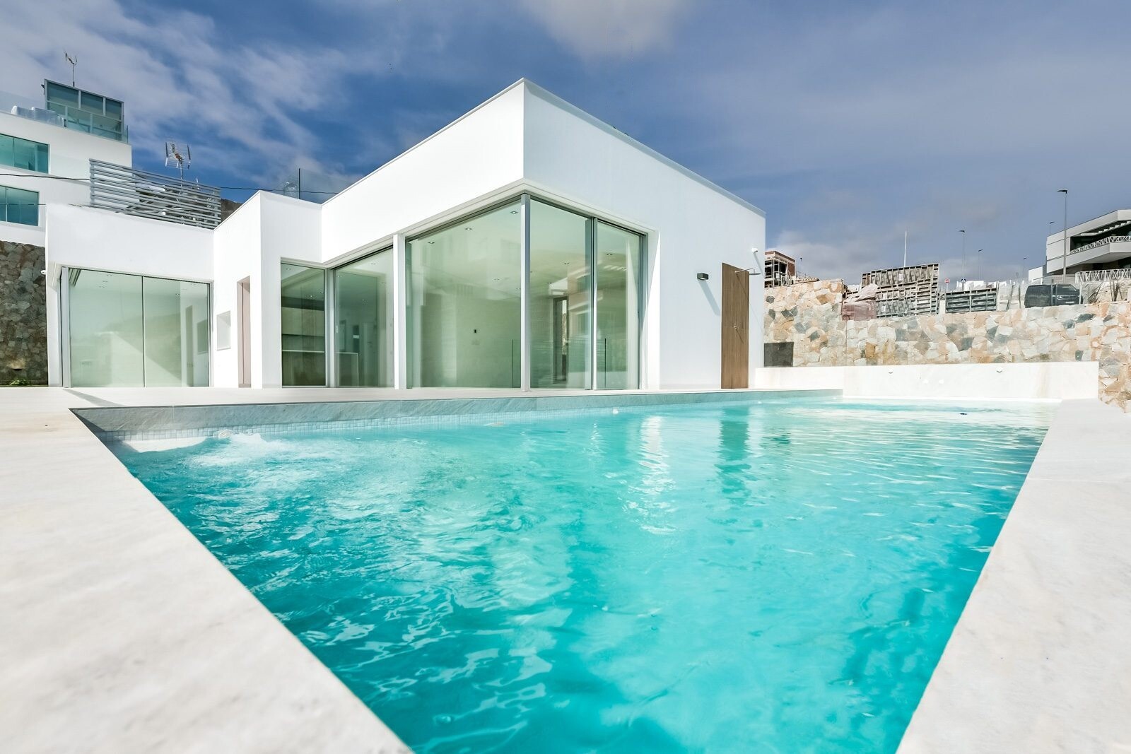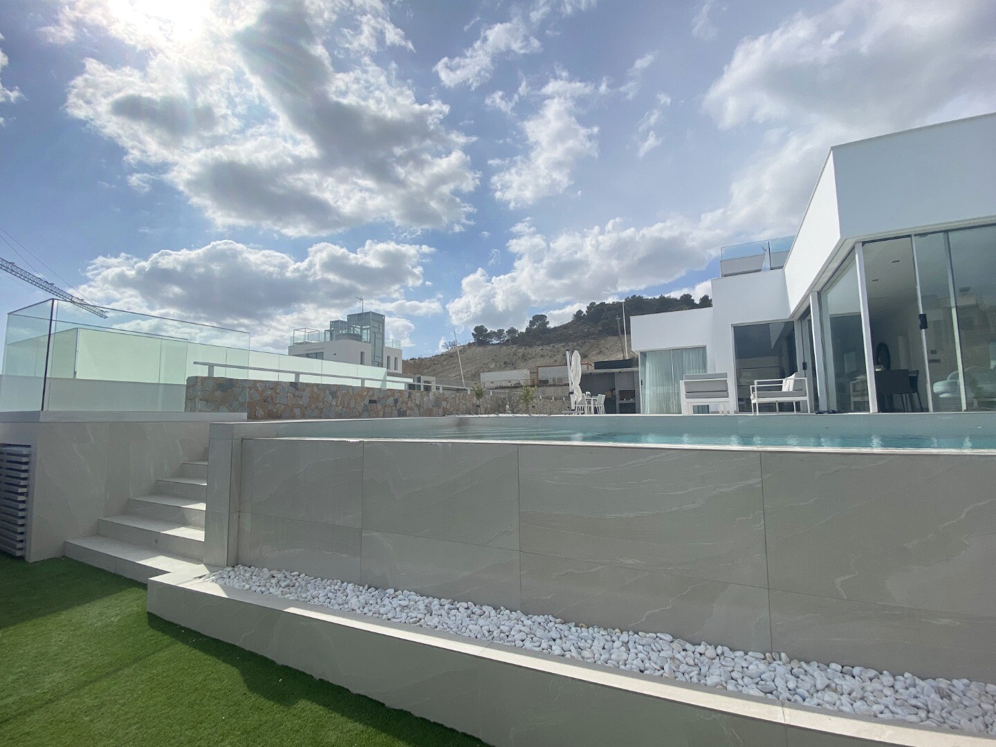 Uprzywilejowane środowisko i tylko 5 km od morza. Projekt łączący widok na morze, światło i specjalny projekt oparty na prostych liniach, jasnych kolorach wykończenia i dużych oknach. Willa typu P-2: Piwnica podzielona jest na 2 sypialnie, 1 łazienkę i część wielofunkcyjną (salon, kino, siłownia). Parter składa się z kuchni-salonu o powierzchni ok.... 44 m2. z dostępem do tarasu, 3 dwuosobowe sypialnie i 2 pełne łazienki (1 z łazienką). Zawiera również basen, ogród z drzewami, altanę i parking na 2 samochody.