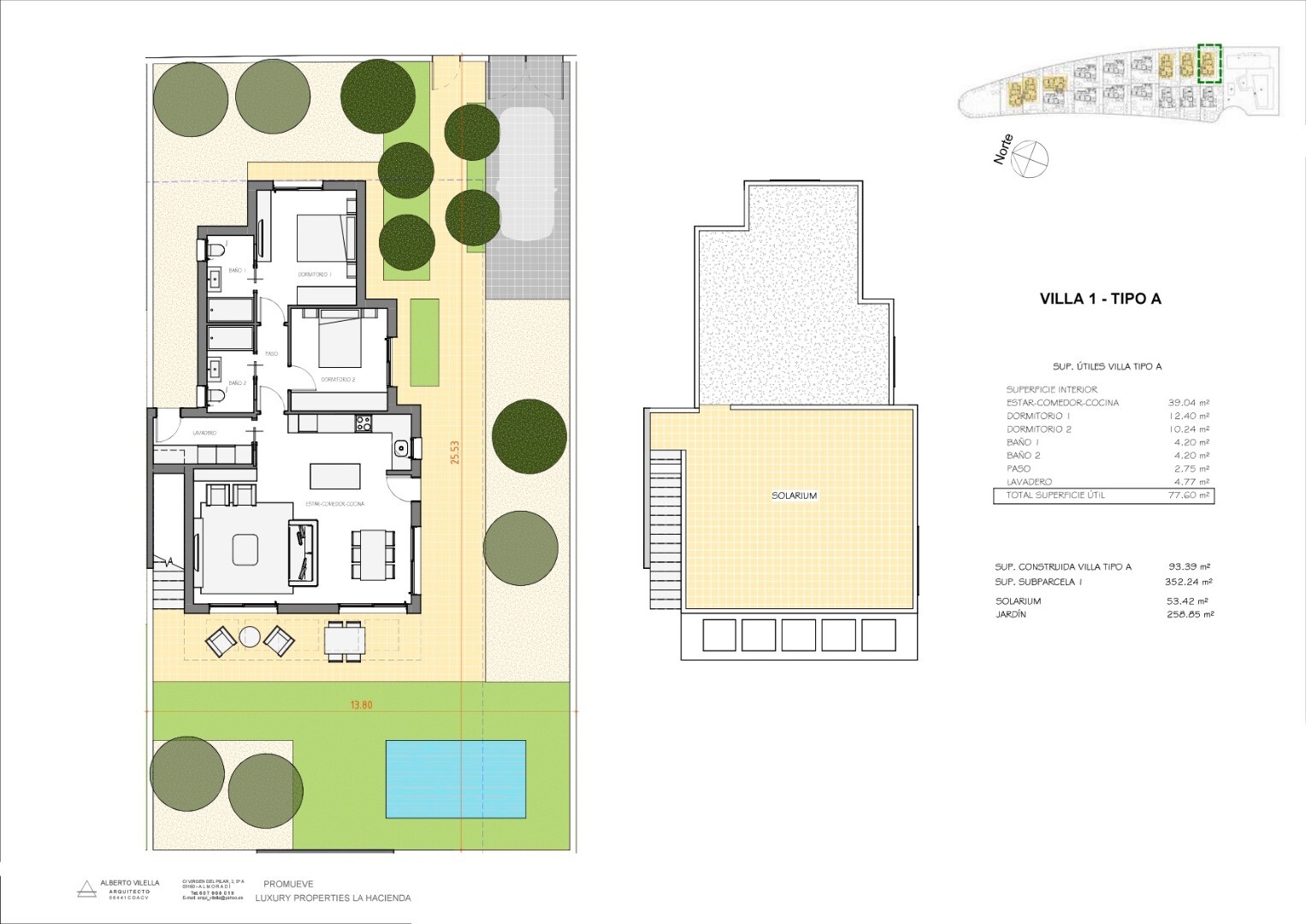 Ta willa stanowi idealne połączenie nowoczesnego designu, komfortu i natury. Te wyjątkowe wille z 2 sypialniami i 2 łazienkami oraz prywatnym basenem o wymiarach 2,4 x 6 m zostały zaprojektowane tak, aby służyć jako dom stały lub dom wakacyjny. Zbudowane są na działkach o powierzchni +/- 300m2 i posiadają miejsce parkingowe oraz solarium na dachu, ...z którego można podziwiać szeroki widok na kurort Hacienda del Alamo.