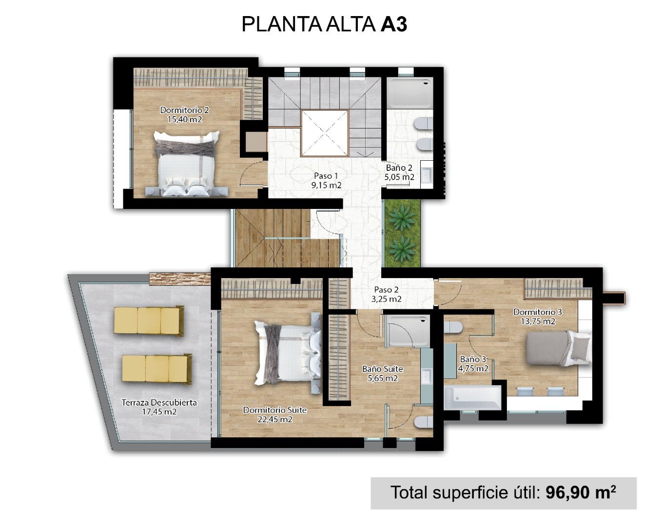 Wewnątrz znajduje się jasny salon z jadalnią, w pełni wyposażona nowoczesna kuchnia, 4 sypialnie oraz 4 łazienki, wszystkie wykończone materiałami wysokiej jakości z myślą o maksymalnym komforcie.