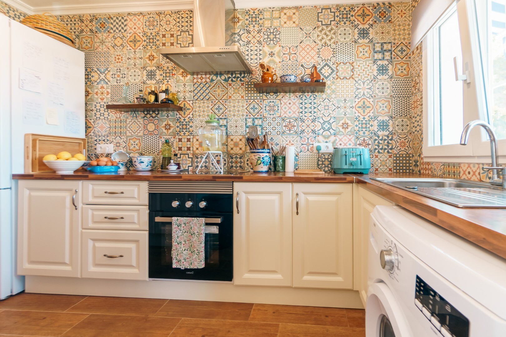 Główny dom obej...muje dwie sypialnie dwuosobowe, jedną sypialnię jednoosobową, pełną łazienkę i toaletę dla gości. Przestronny salon z kominkiem na pellet uzupełnia nowoczesna, w pełni wyposażona kuchnia.