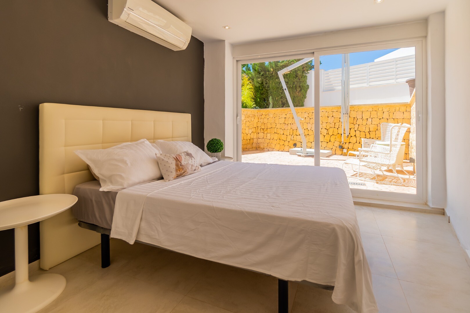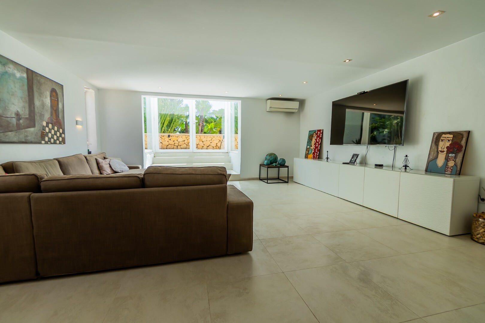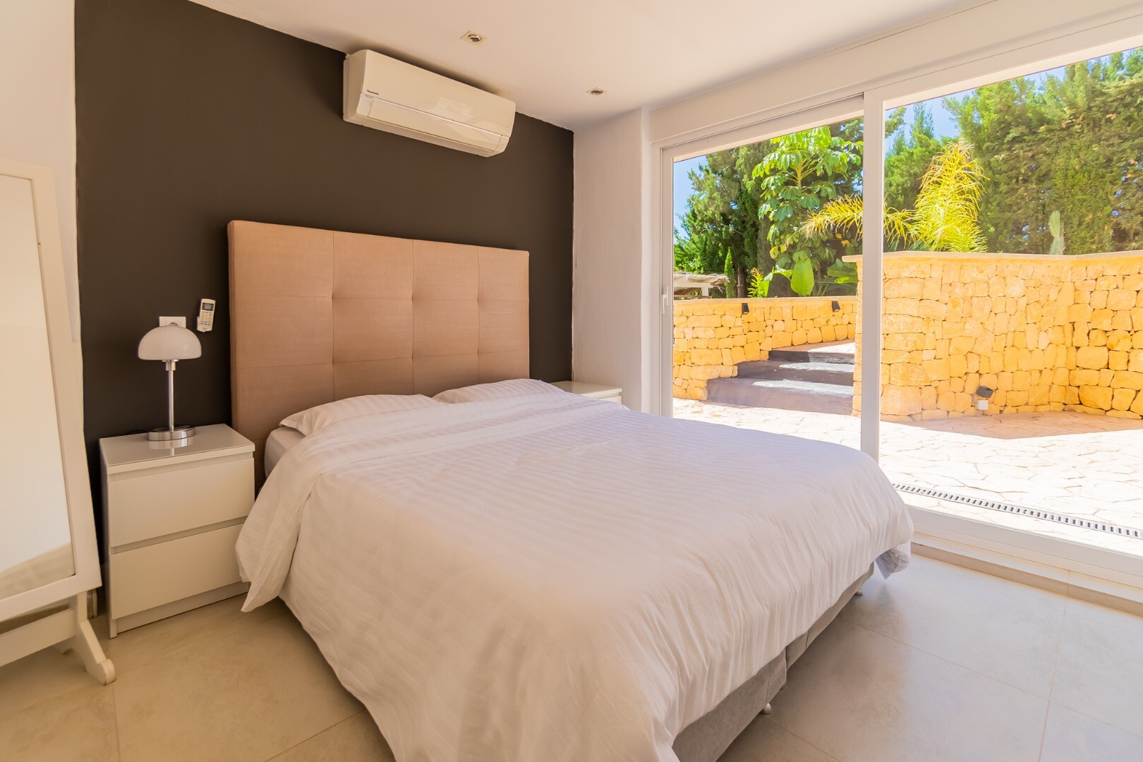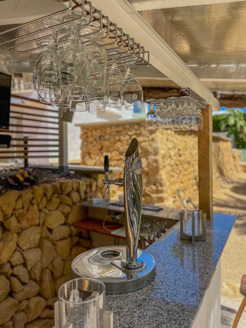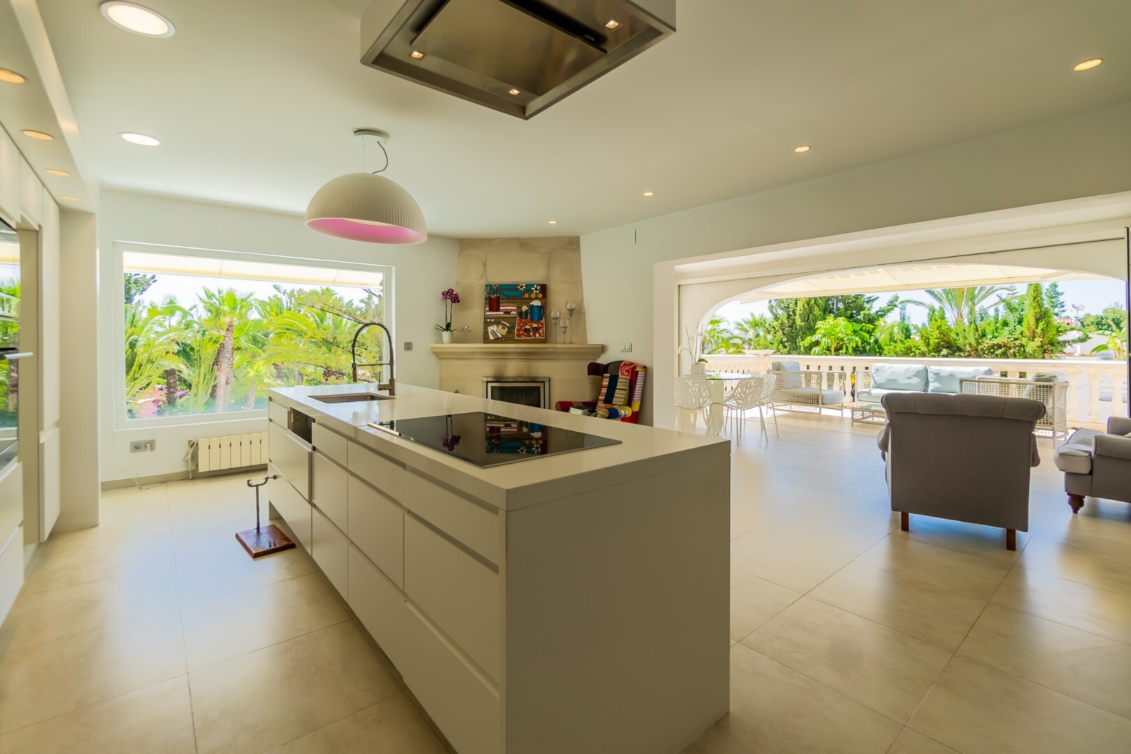 - **Dom Główny:** Ta piękna willa znajduje się... na górnej działce i posiada 3 sypialnie z nowymi szafami wnękowymi oraz 2 nowoczesne łazienki z ogrzewaniem podłogowym. Otwarta koncepcja amerykańskiej kuchni obejmuje centralną wyspę z biało-kremowym blatem Silestone, który idealnie komponuje się z salonem, w którym znajduje się przytulny kominek i duże okna wychodzące na południe, w których można łapać zimowe światło słoneczne.