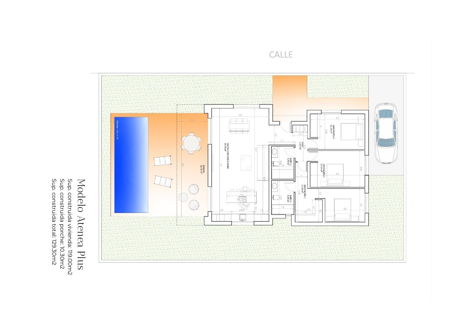 Gdzie znajdziemy przestronny salon-jadalnię z otwartą kuchnią (łącznie z meblami kuchennymi, bez sprzętu AGD), która komunikuje się poprzez dwa duże okna z dużą nowoczesną werandą, która daje dostęp do ogrodu na świeżym powietrzu, a dlaczego nie... do ewentualnie basenu basen. Jako dodatkową przestrzeń, willa posiada pralnię, strategicznie umieszczoną w rozmieszczeniu domu, do której można łatwo dotrzeć z dowolnego miejsca w domu.