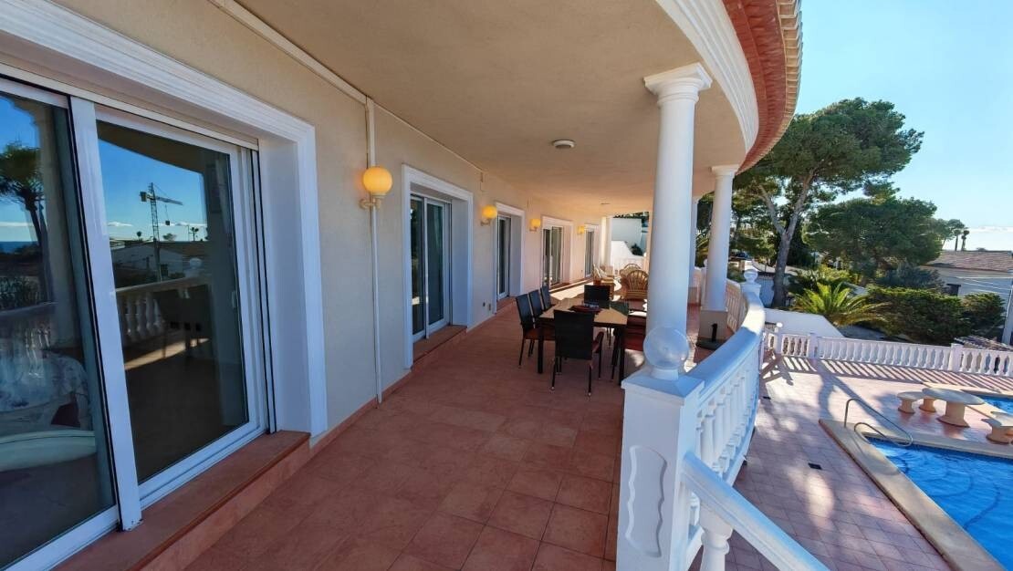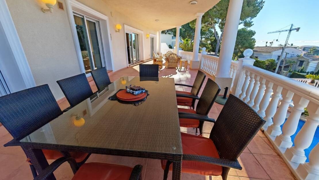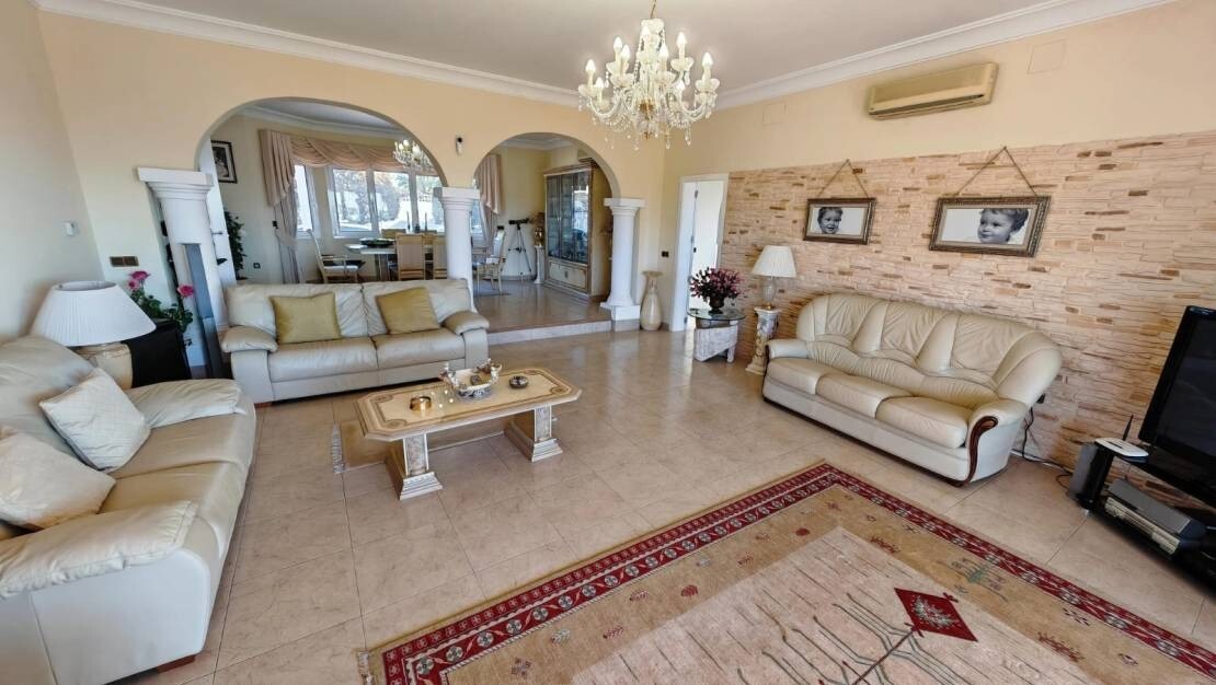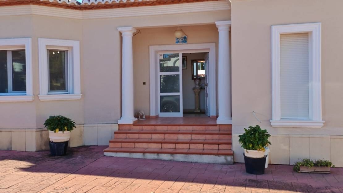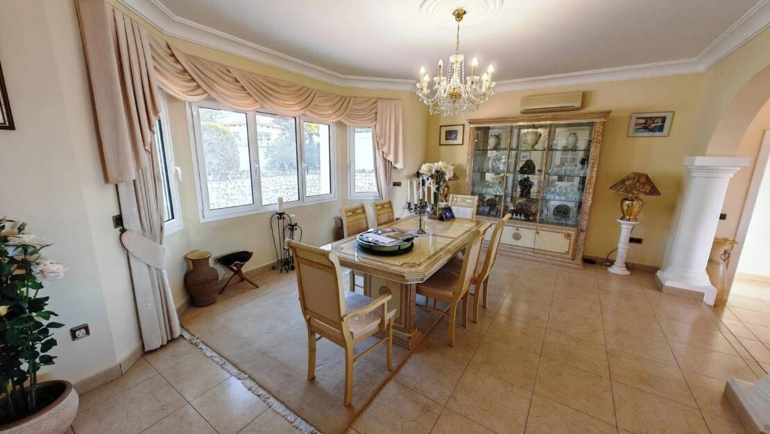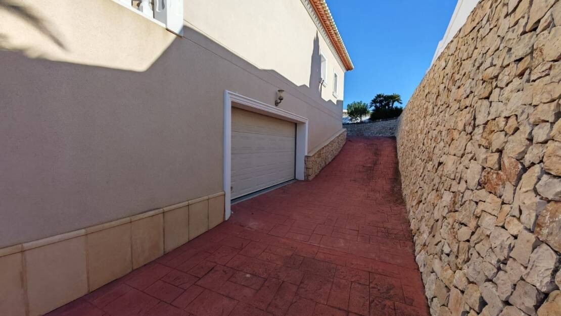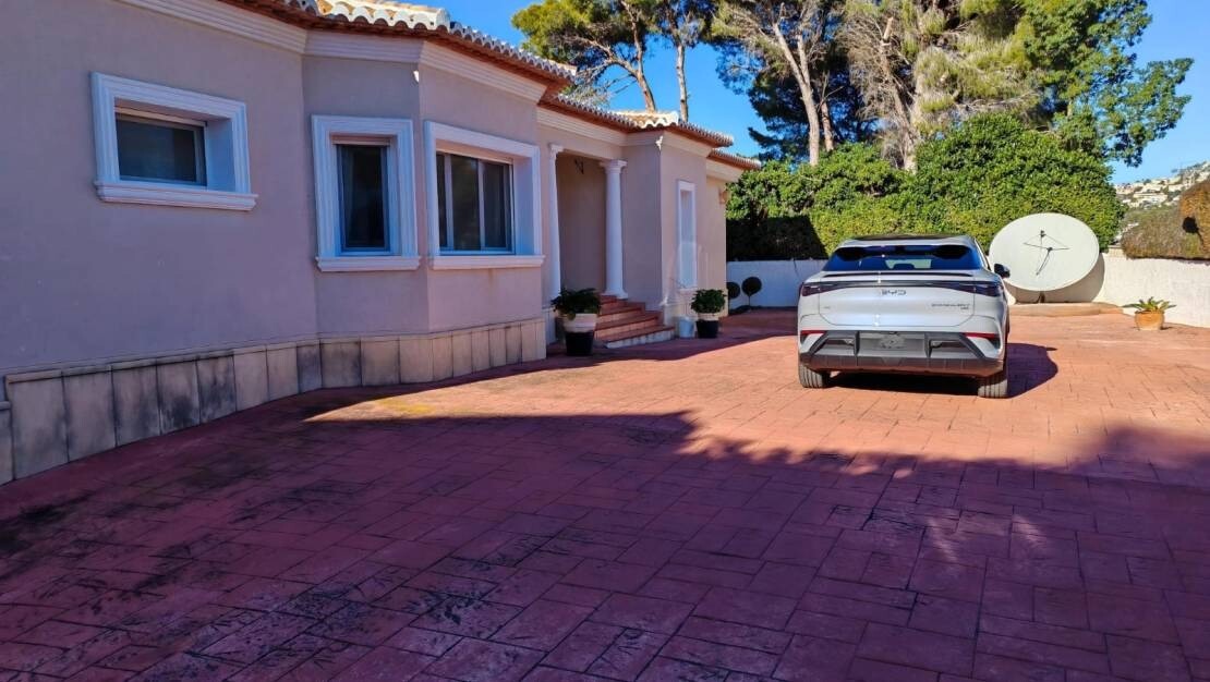 Ta zachwycająca, 4-pokojowa willa w Moraira oferuje wyjątkowe połączenie przestronnego salonu, nowoczesnego designu i zapierających dech w piersiach widoków na morze. Położona na dużej działce o powierzchni 1280 m², nieruchomość zapewnia mnóstwo miejsca do relaksu i rozrywki, z możliwością przyszłej rozbudowy.