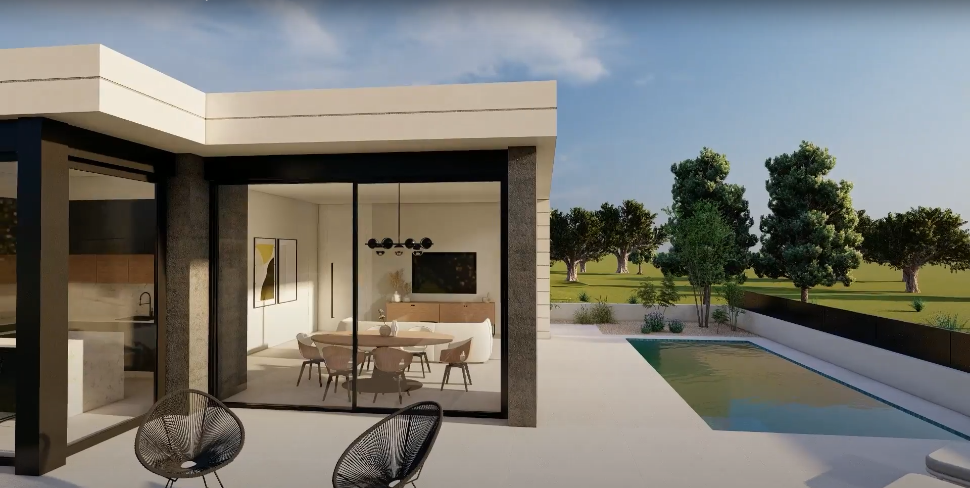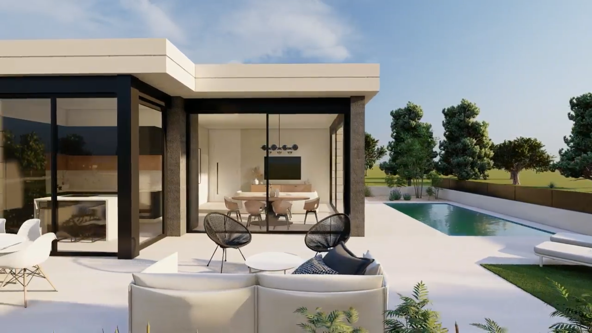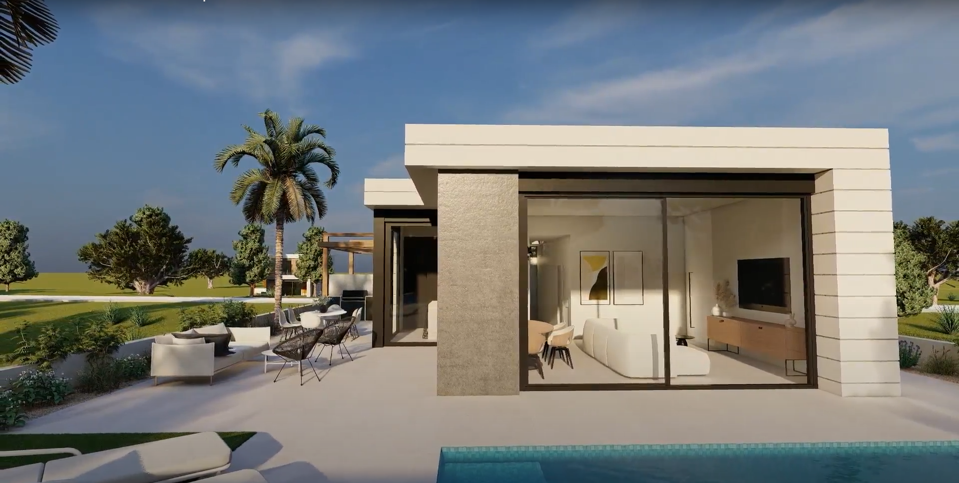 Mała rezydencja z 6 willami na polu golfowym Lo Romero w Pilar de la Horadada. W budowie są 4 wille parterowe i 2 wille 2-piętrowe. Wszystkie mają 3 sypialnie i 2 łazienki oraz toaletę dla gości. Wille są dostarczane w komplecie ze sprzętem kuchennym, klimatyzacją i roletami elektrycznymi. Ogród jest całkowicie wykończony systemem nawadniającym i p...rywatnym basenem o wymiarach 6x3m.