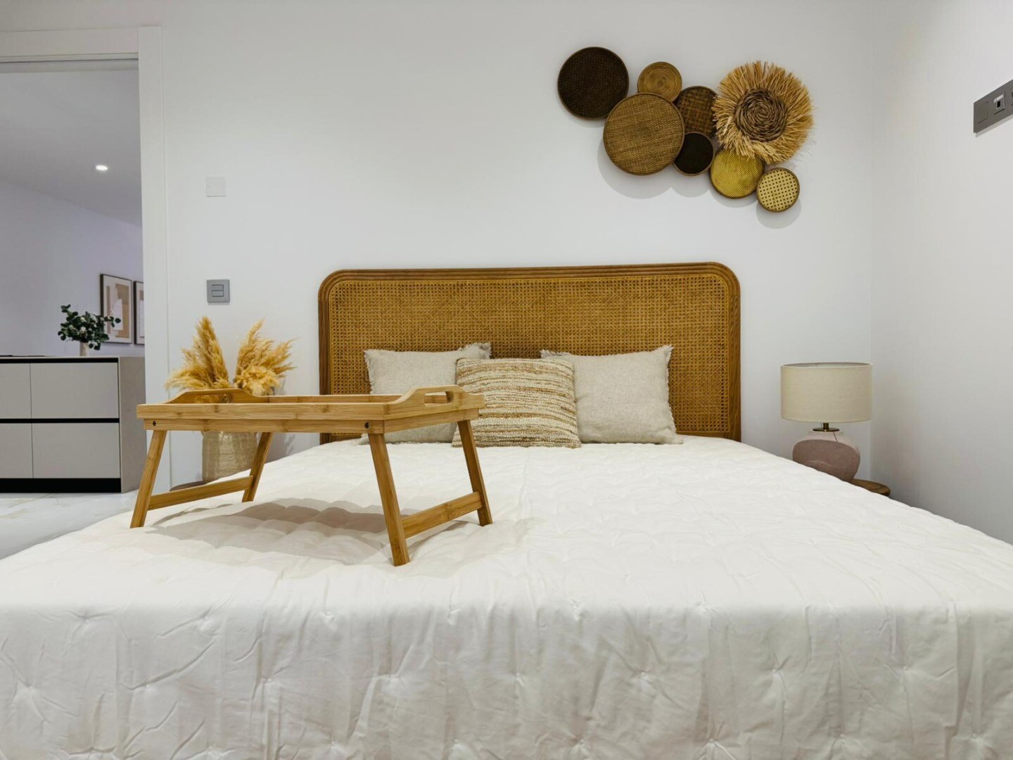 Każdy parterowy dom oferuje idealną równowagę komfortu, stylu i funkcjonalności. Oferuje 3 przestronne sypialnie i 2 łazienki, a także jasny salon z otwartą, w pełni wyposażoną ku...chnią i centralnie umieszczoną wyspą, z którego roztacza się piękny widok na prywatny basen.