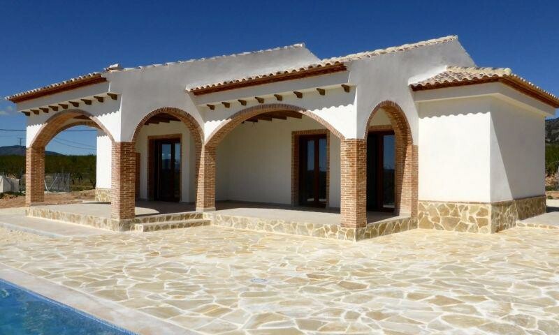 WILLA W TYPOWEJ HISZPAŃSKIEJ WIOSCE Fantastyczna, nowo wybudowana willa na działce o powierzchni 10000 m2 w Pinoso. Willa ma powierzchnię 147.80m2, wszystkie na jednym piętrze, z gankiem 31.80m2, salon-jadalnia-kuchnia 35.95m2, 3 sypialnie, 2 łazienki, galeria. Wliczone w cenę: Klimatyzacja kanałowa przed instalacją. Łazienki wyposażone w meble łaz...ienkowe z lustrem, kabiną prysznicową i bateriami. Urządzenia elektryczne: płyta ceramiczna, piekarnik, wentylator wyciągowy, zmywarka. Kuchnia z białymi meblami i krajowym granitem Wewnętrzne diody LED w całym domu i na ganku Podwójne szyby, drzwi wewnętrzne i białe szafy wnękowe. Na zewnątrz bez trawnika i roślin. Ogrodzony z automatyczną bramą dla pojazdów i bramą dla pieszych. Basen w extra Jeśli szukasz spokojnej okolicy, w pobliżu typowych hiszpańskich wiosek, w otoczeniu gór, to jest to dom dla Ciebie!