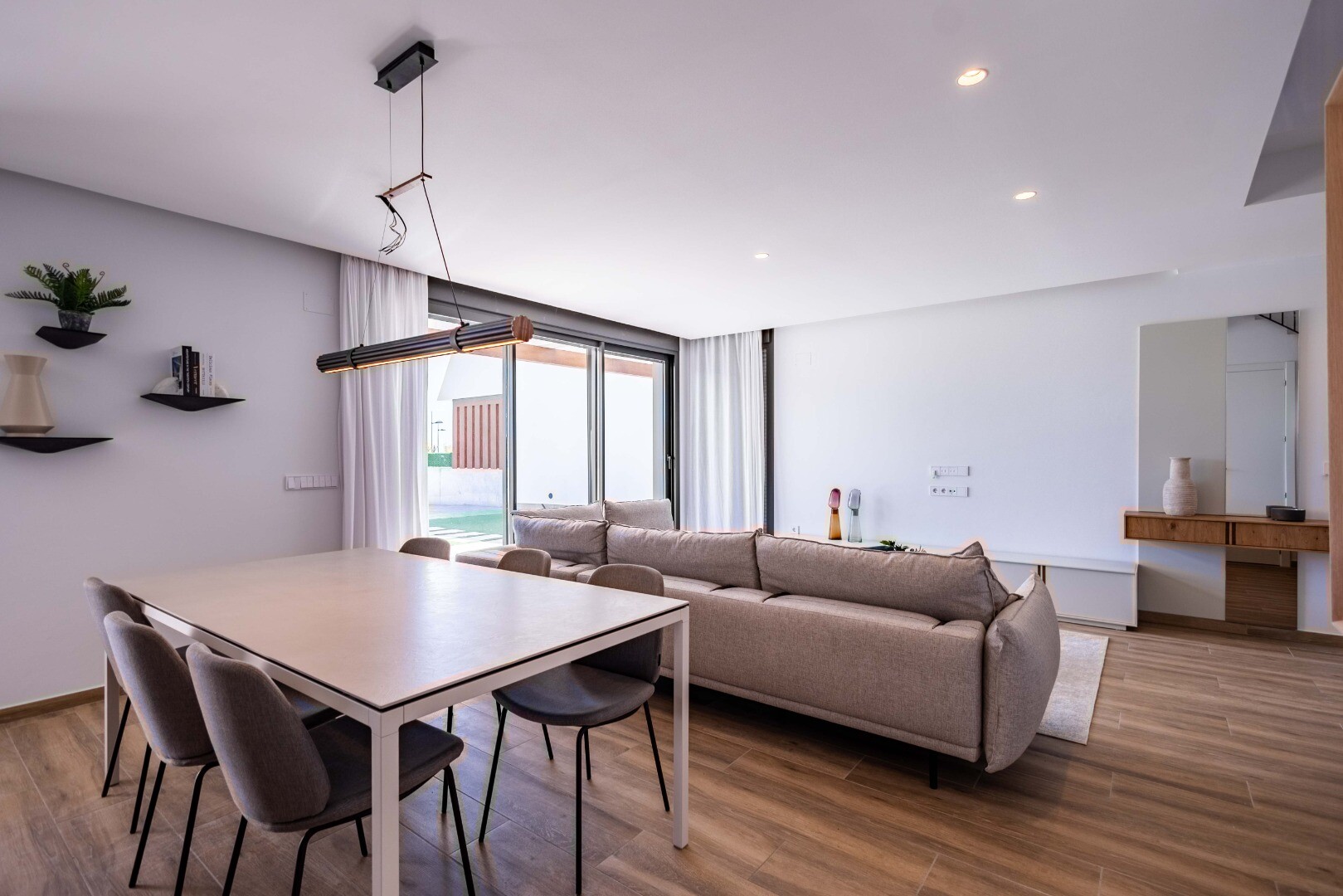 Rezydencje są zaprojektowane tak, aby ciesz...yć się świeżym powietrzem, z nie tylko tarasami, ale także ogrodami, werandami i tarasami słonecznymi w każdym domu. Ponadto większość domów w Polop oferuje możliwość dodania prywatnego basenu (bez krawędzi lub płytkiego, w zależności od terenu). Alternatywnie, osoby, które zdecydują się na dom parterowy, mogą zdecydować się na zainstalowanie jacuzzi na tarasie słonecznym.