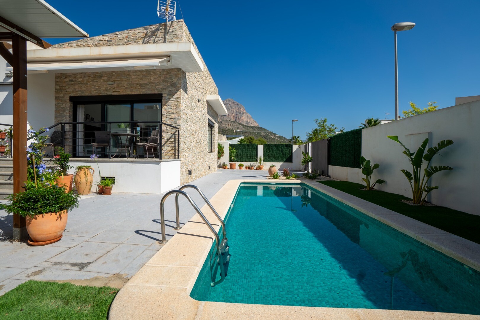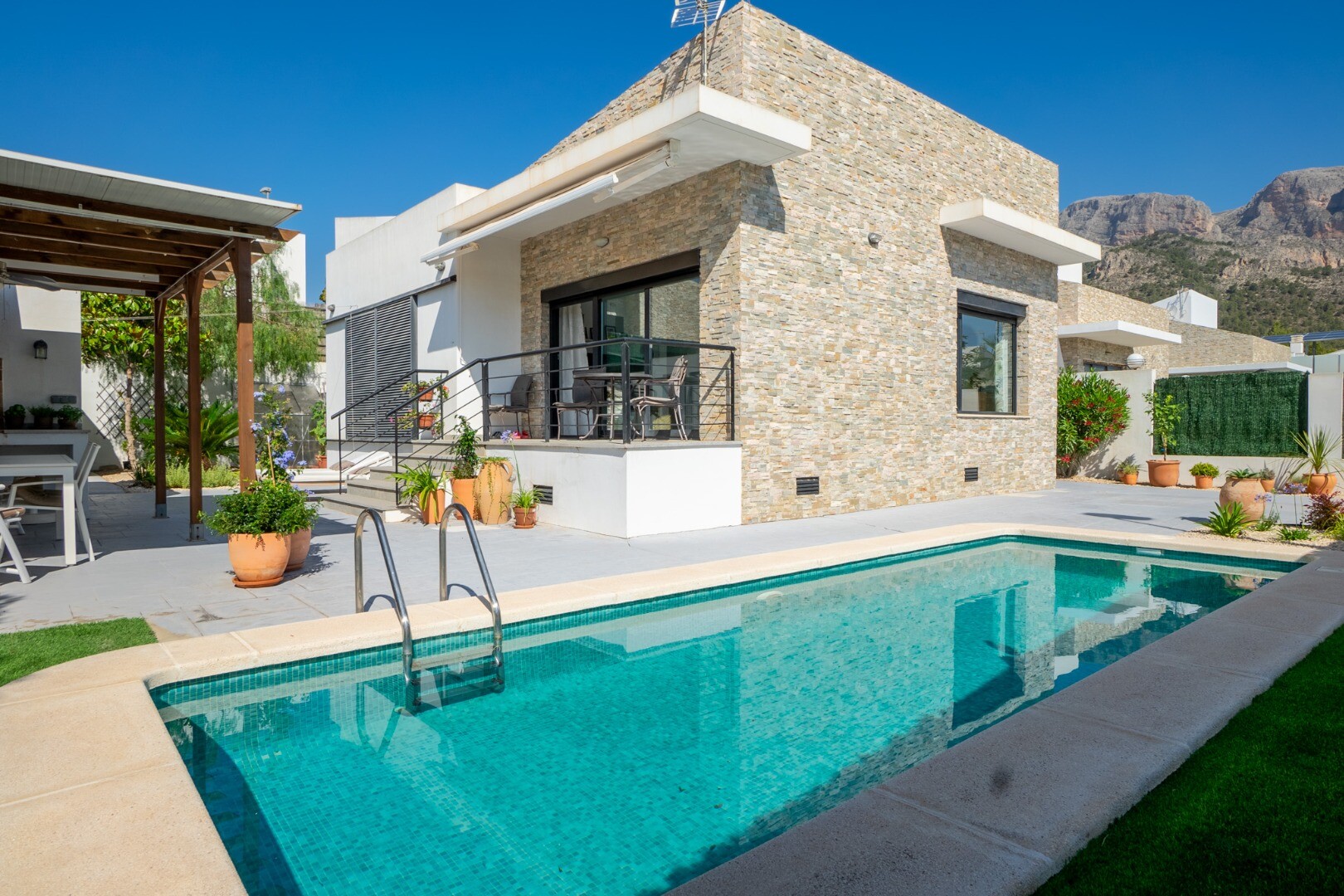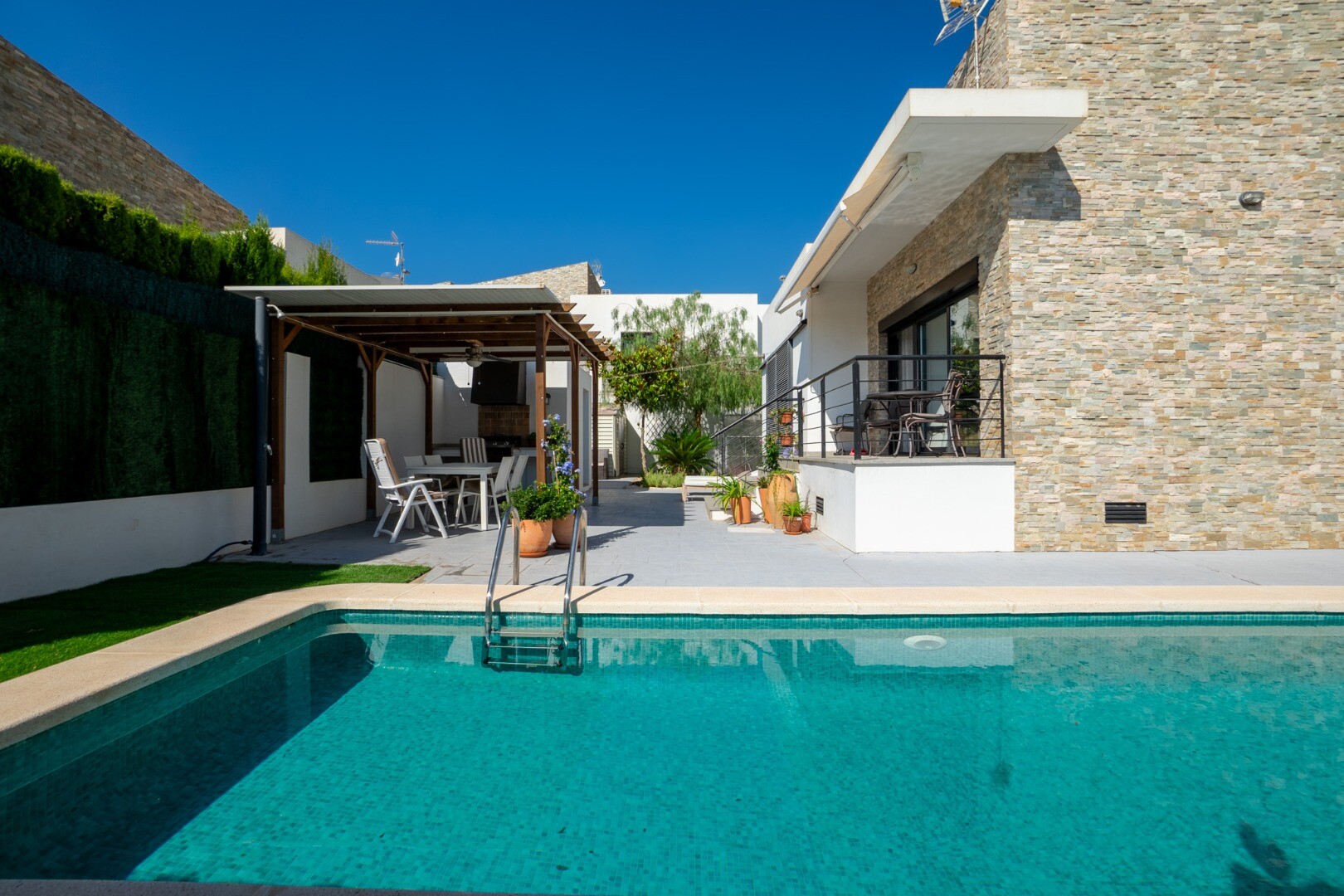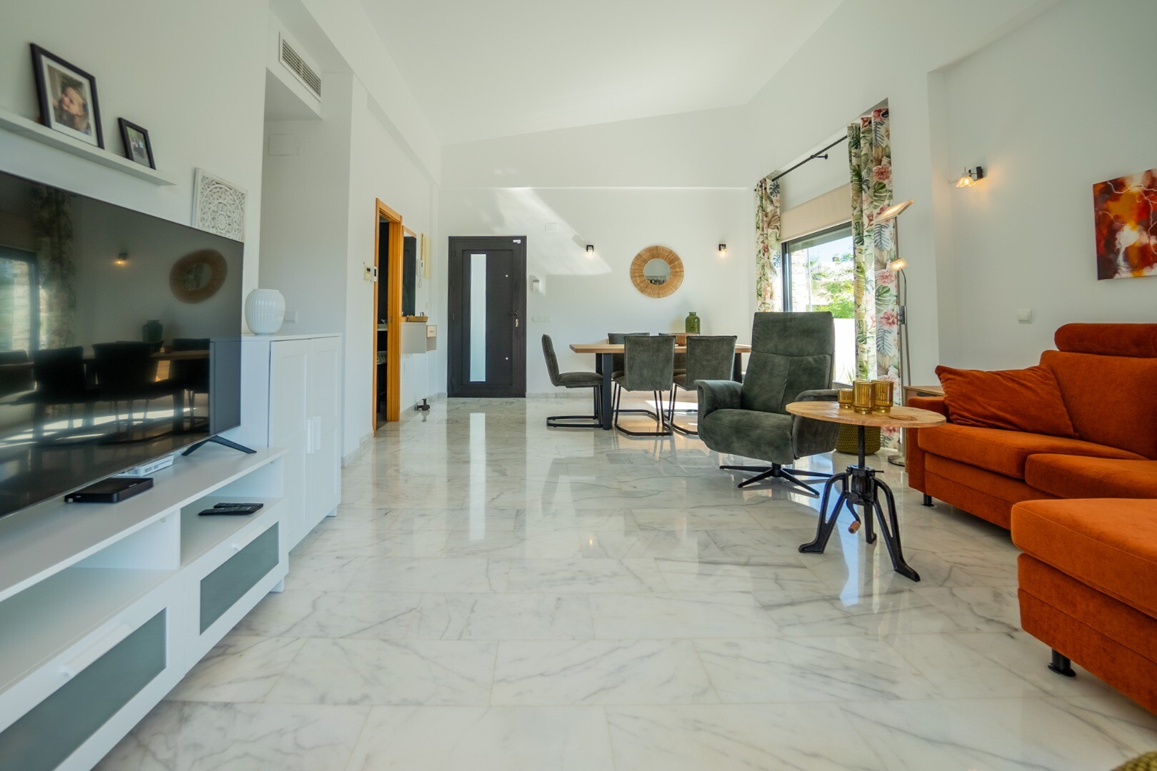 Urocza willa na sprzedaż w Polop de la Marina w Alicante, położona w cichej dzielnicy mieszkalnej w URBANIZACJI. Ta używana nieruchomość wybudowana w 2014 roku oferuje jasne i przestronne otoczenie z wysokimi sufitami i marmurowymi podłogami w całym domu.