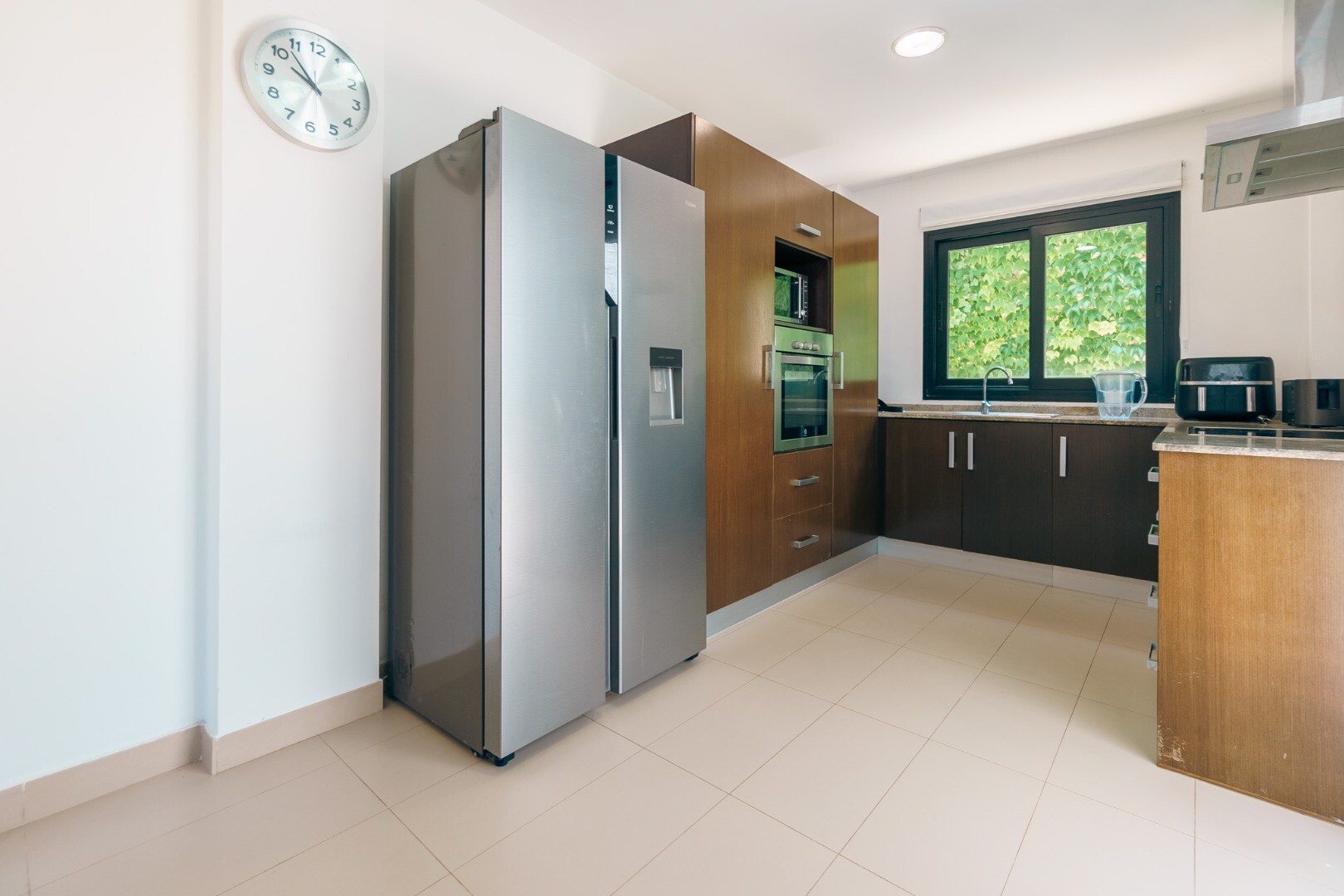 Wyposażony w kanałowy system klimatyzacji (ciepło i zimno) dla całorocznego komfortu. Na zewnątrz znajduje się osobna pralnia/pomieszczenie gospodarcze dla dodatkowej wygody.