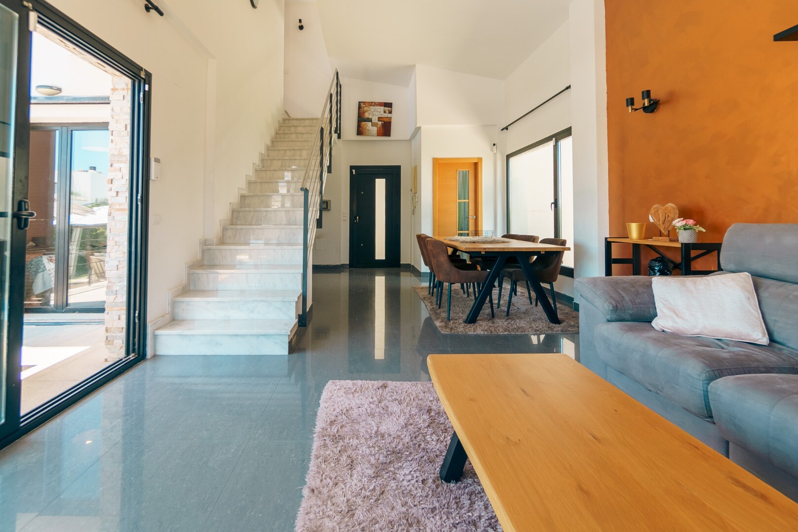 Ta nowoczesna willa znajduje się w spokojnej urbanizacji w Polop i stoi na działce o powierzchni 400 m² z prywatnym basenem, ogrodem o niskich wymaganiach konserwacyjnych i przytulnym miejscem do grillowania — idealnym do życia na świeżym powietrzu.