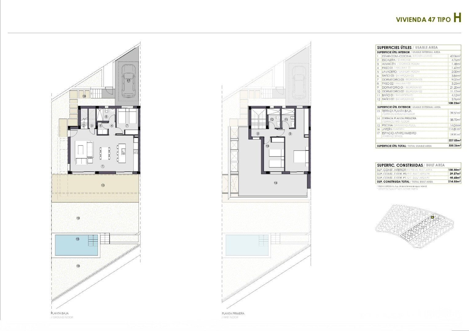 Układ tych domów jest zaprojektowany tak, aby zapewnić komfort w codziennym życiu, z w pełni wyposażonymi kuchniami o otwartej koncepcji, które obejmują blat, płytę indukcyjną, piekarnik, okap i zlew. Łazienki są również w pełni wyposażone.