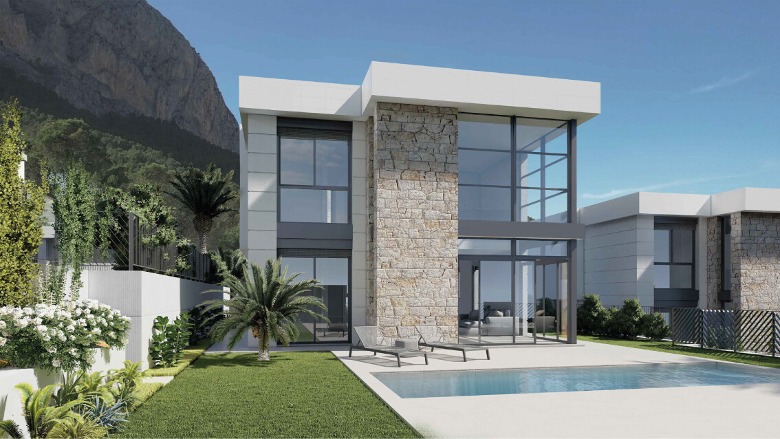 Ta elegancka, współczesna willa z rynku pierwotnego, rozłożona na dwóch kondygnacjach, oferuje 163 m² powierzchni zabudowanej na działce o powierzchni 393 m², położonej w spokojnej dzielnicy mieszkaniowej Polop.
