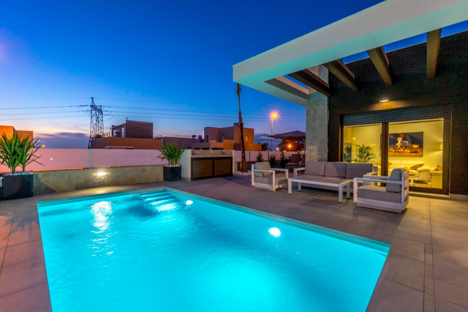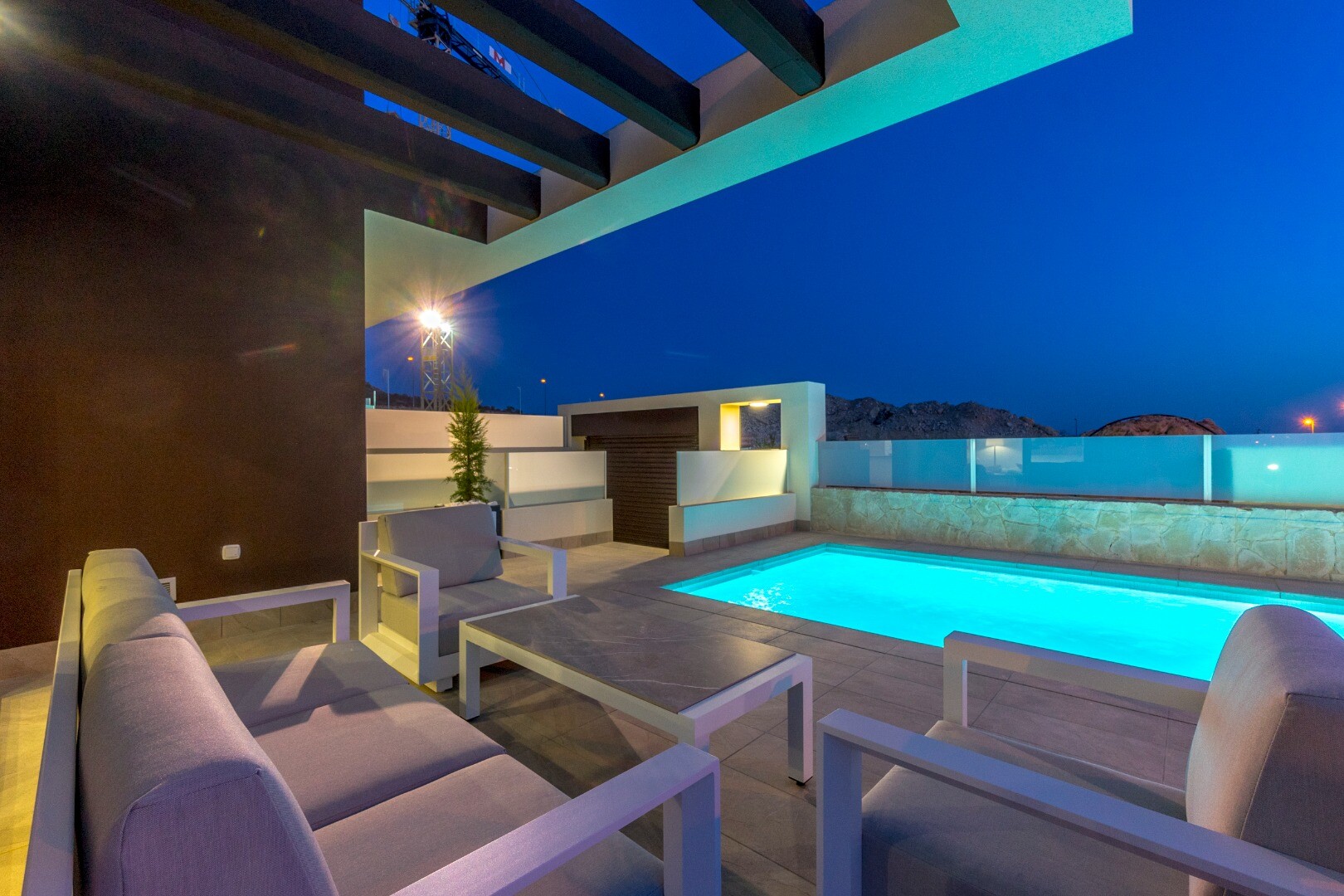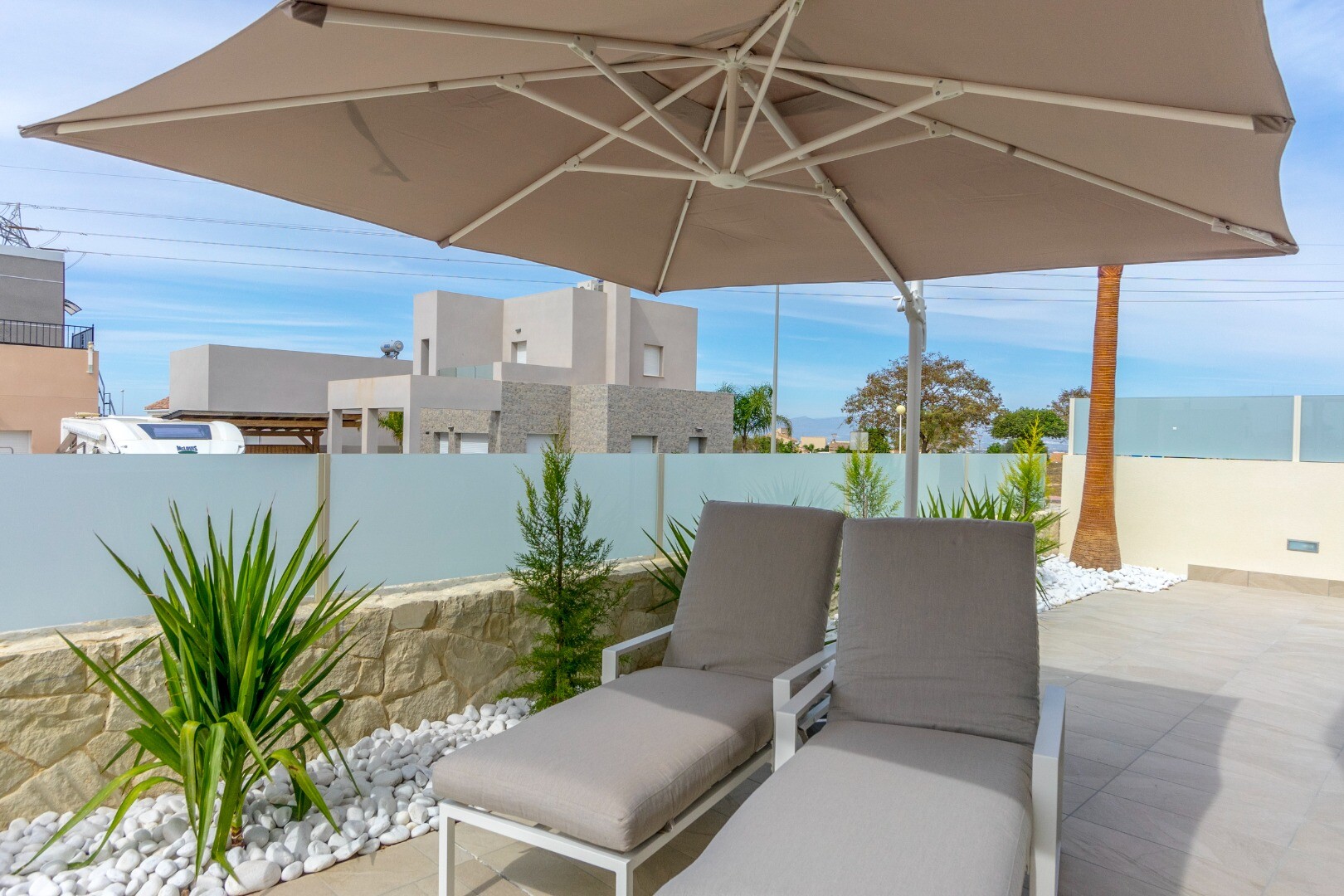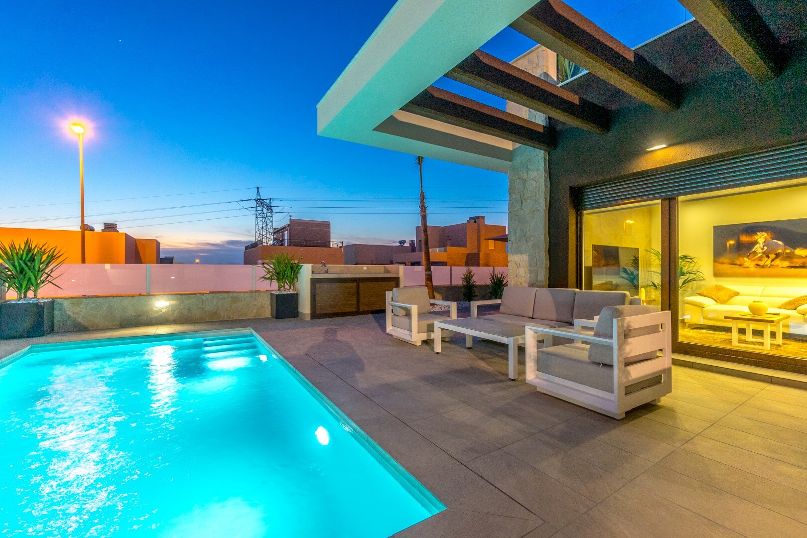 Nieruchomości dostarczane są z automatycznymi roletami i otwieraniem bram, klimatyzacją ciepło/zimno, sprzętem kuchennym, oświetleniem wewnętrznym i zewnętrznym, w pełni wyposażonymi szafami, basenem o wymiarach 6x3 metry i instalacją wstępną pod panele słoneczne. Opcjonalnie istnieje możliwość zainstalowania solarium w cenie 16 500 € + IVA....