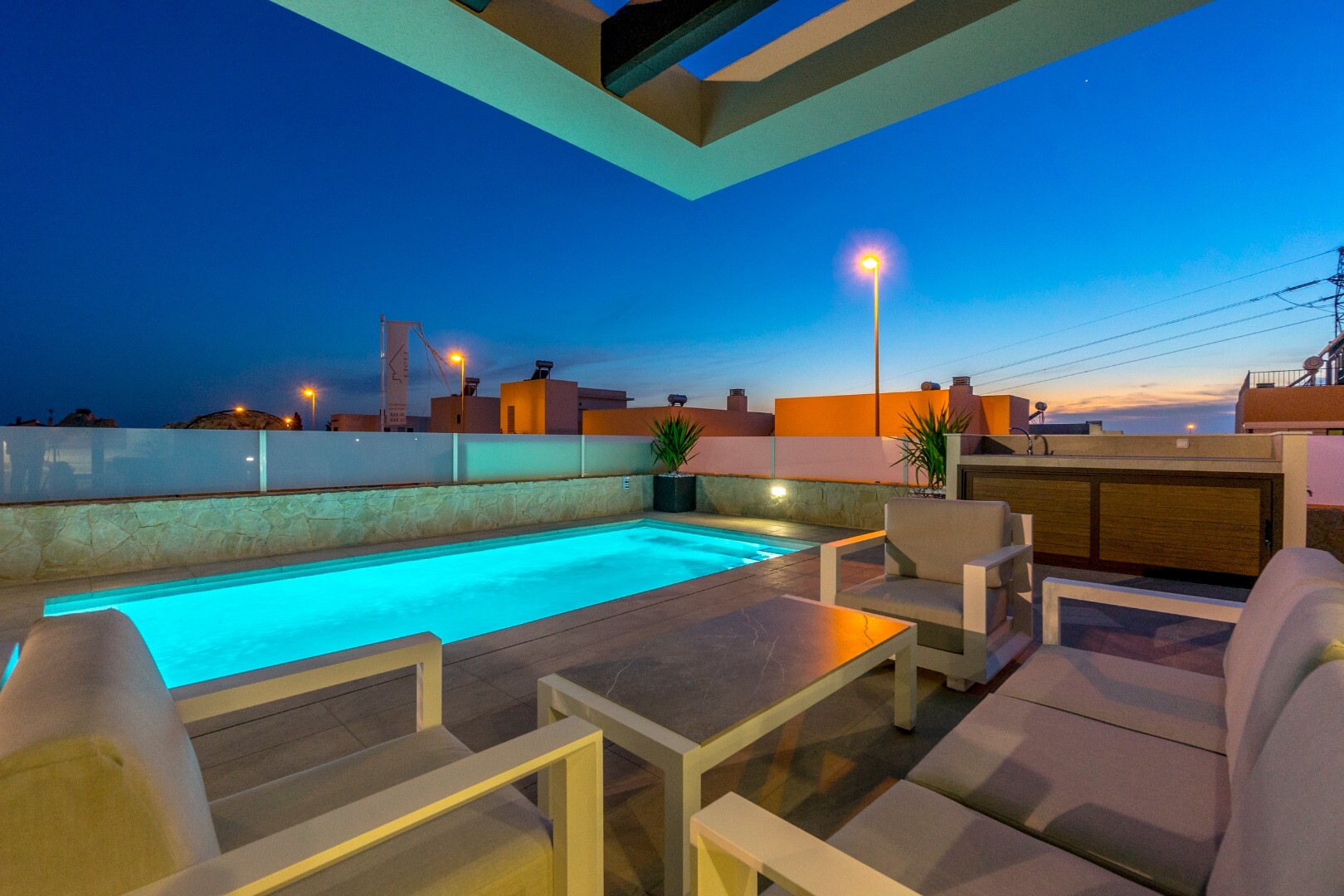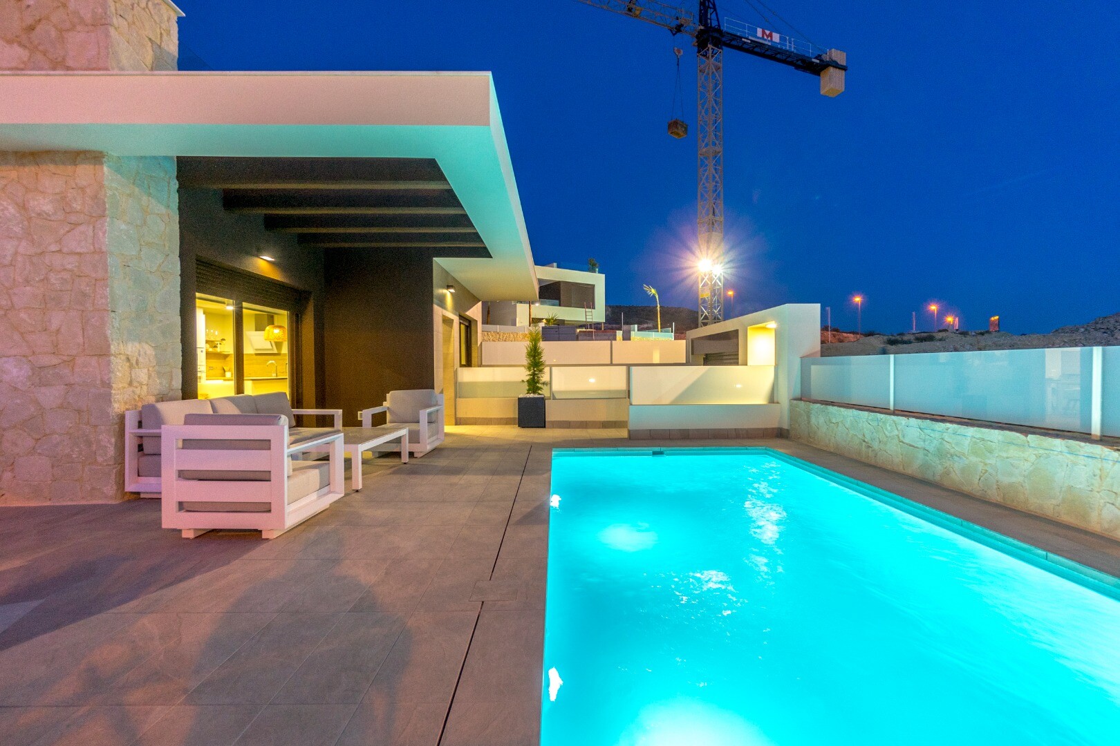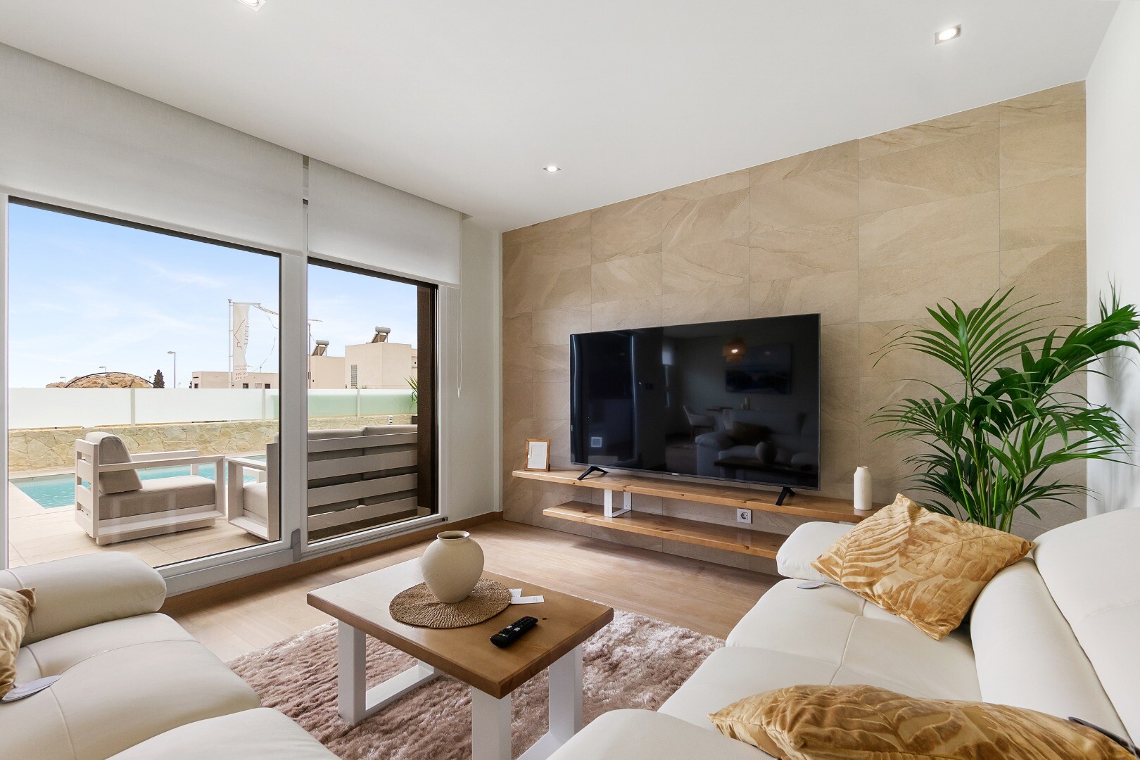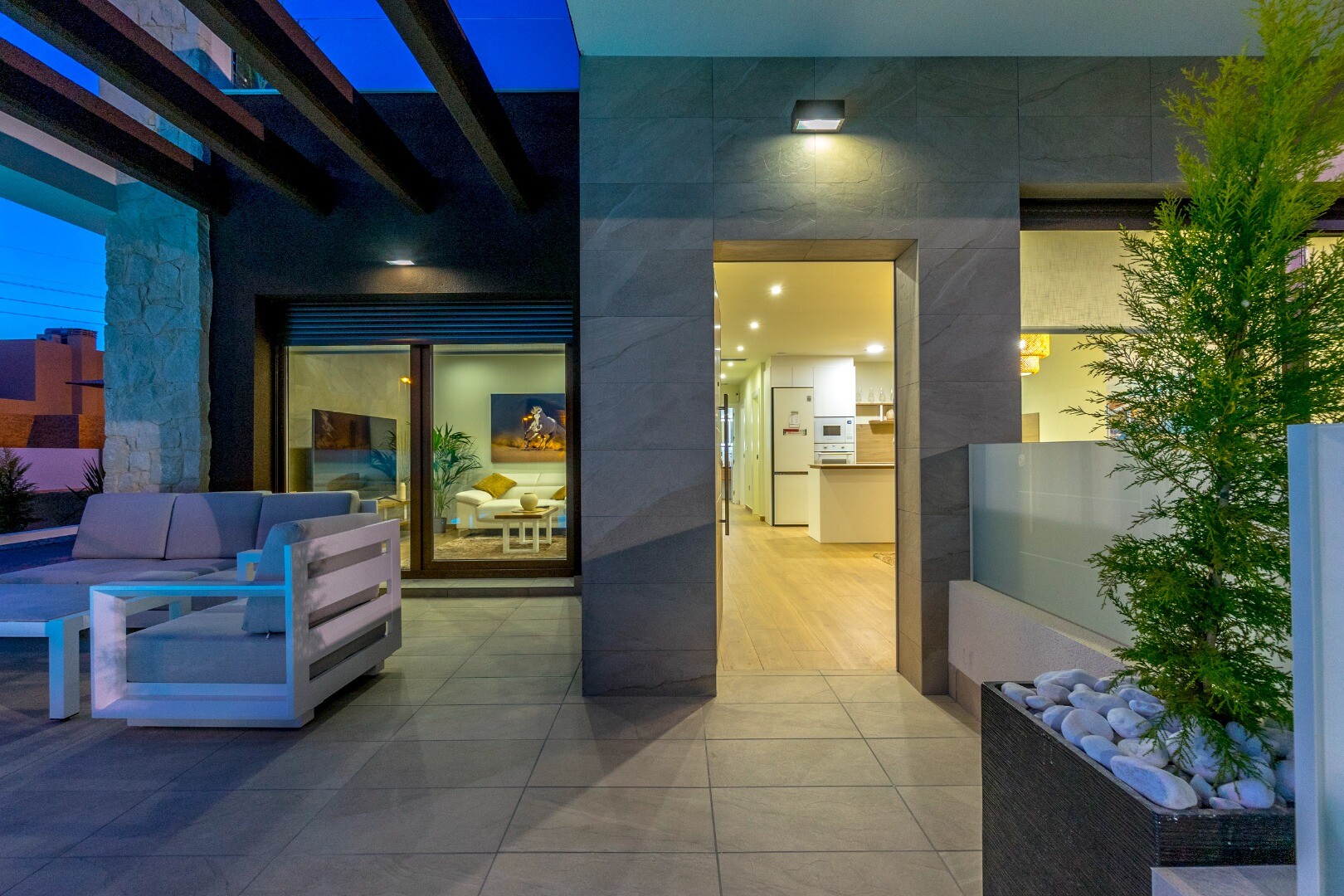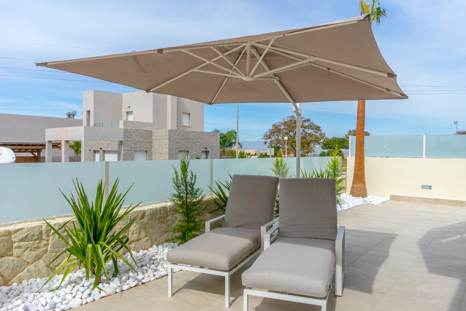 Nieruchomości dostarczane są z automatycznymi roletami i otwieraniem bram, klimatyzacją ciepło/zimno, sprzętem kuchennym, oświetleniem wewnętrznym i zewnętrznym, w pełni wyposażonymi szafami, basenem o wymiarach 6x3 metry i instalacją wstępną pod panele słoneczne. Opcjonalnie istnieje możliwość zainstalowania solarium w cenie 16 500 € + IVA....
