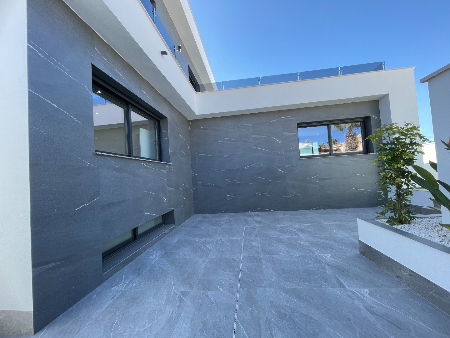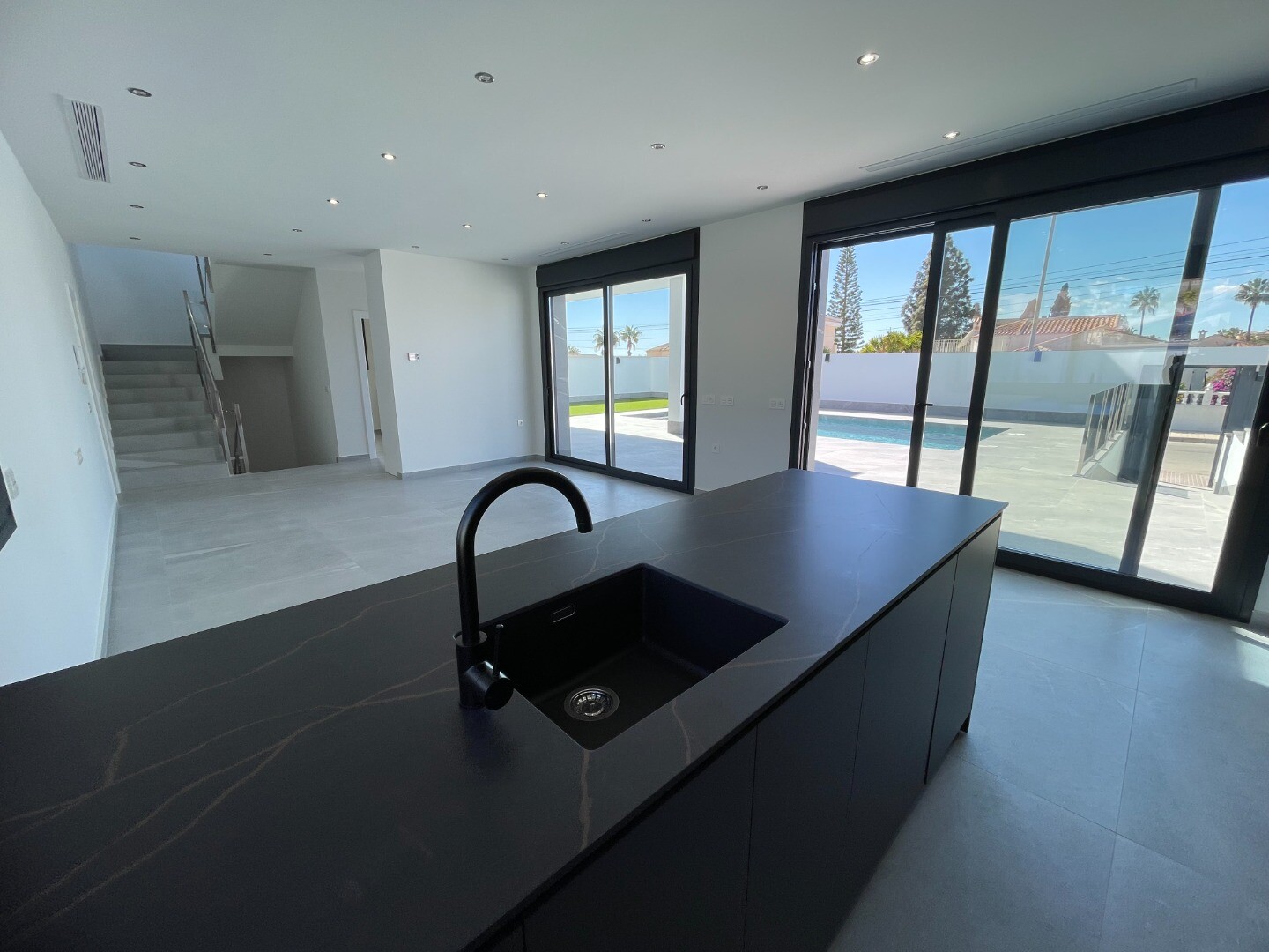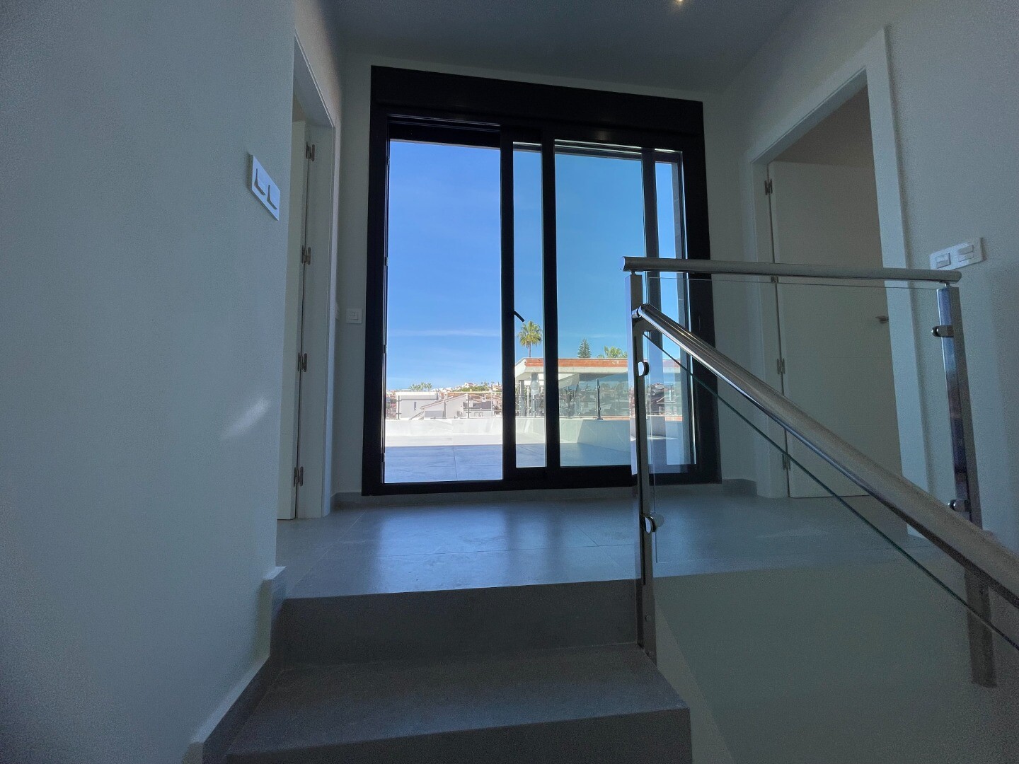 Nowoczesna, nowo wybudowana willa z 3 sypialniami i 3 łazienkami w Ciudad Quesada (Rojales) na działce o powierzchni 500 m2 i powierzchni mieszkalnej 150 m2 z garażem podziemnym i 2 piwnicami o powierzchni 100 m2. Willa posiada podgrzewany basen o wymiarach 8x4m i automatyczny system nawadniania ogrodu. Ponadto willa wyposażona jest w oświetlenie w...ewnętrzne i zewnętrzne, w pełni wykończoną kuchnię ze sprzętem AGD, oddzielną pralnię oraz ogrzewanie podłogowe i klimatyzację w całym domu za pomocą pompy ciepła.