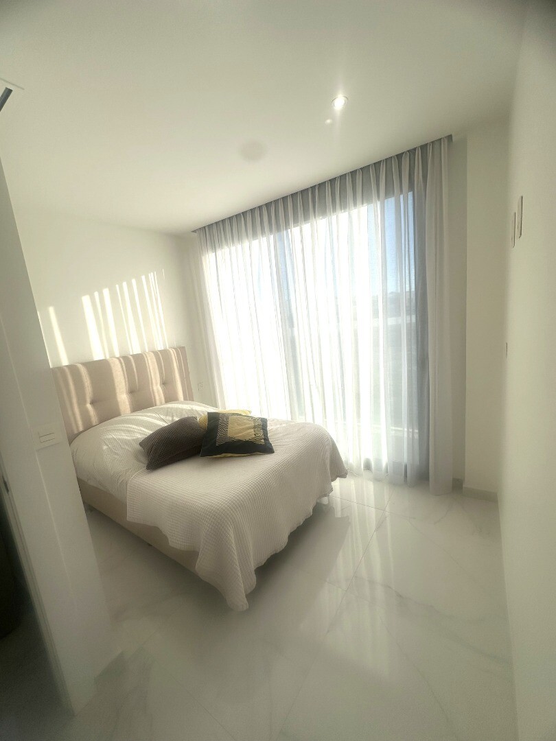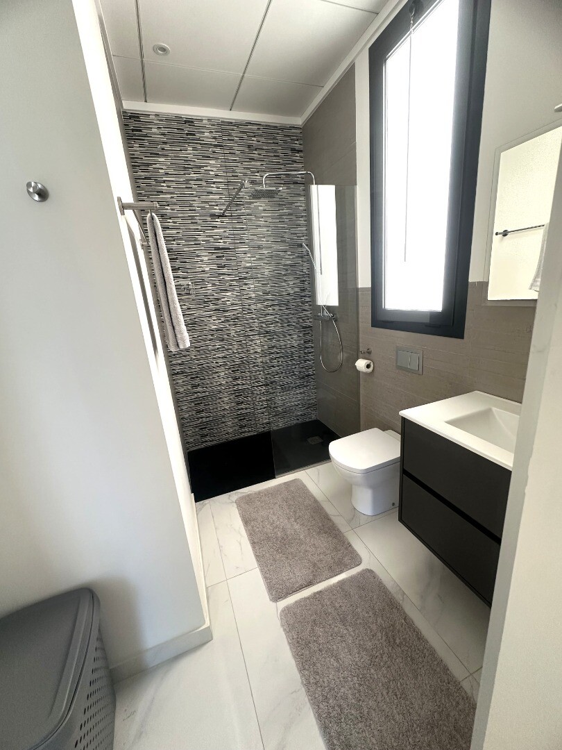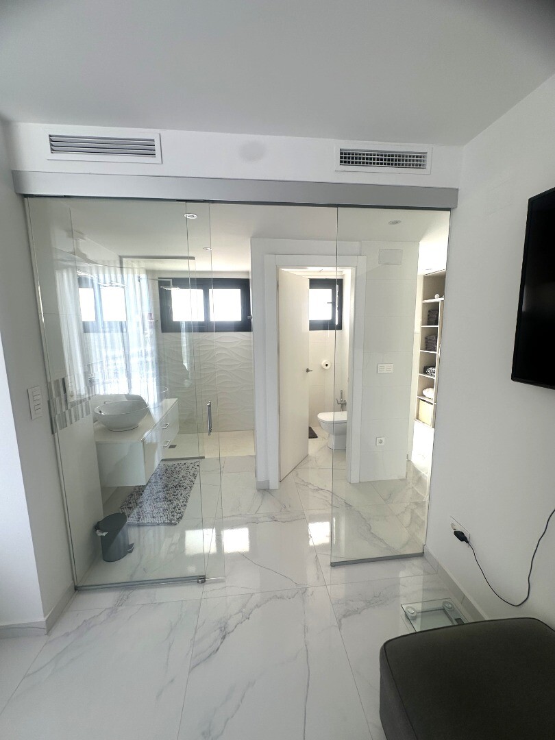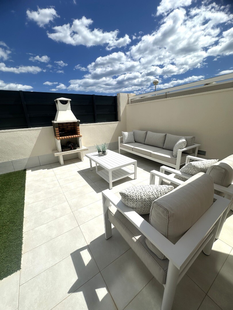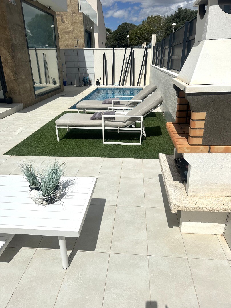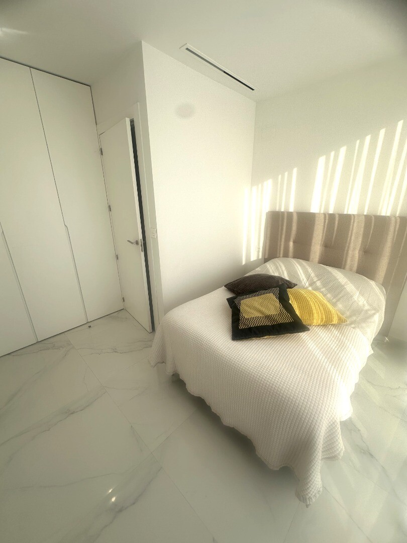 Nowoczesne wille z drugiej ręki w stylu Treze Villas z 2016 r. z widokiem na lagunę w Ciudad Quesada. Ten kompleks w Rojales składa się z 13 nowoczesnych domków, każdy z osobnym wejściem od strony wspólnej drogi. Na prywatnej działce o powierzchni 115m2 znajduje się prywatne miejsce parkingowe w ogrodzie. Na parterze znajduje się jasny, przestronny... salon z widokiem na basen, otwarta kuchnia, sypialnia z podwójnym łóżkiem, łazienka i zadaszony taras. Na pierwszym piętrze znajduje się duża sypialnia z prywatną łazienką i garderobą, z tej sypialni jest wyjście na taras o powierzchni 10m2. Dodatkowo znajdą Państwo pokój dwuosobowy. Na najwyższej kondygnacji znajduje się solarium o powierzchni 44m2. Nieruchomość została w pełni zmodernizowana i wyposażona w dodatkowe udogodnienia, takie jak basen z wodą morską, ogród wyłożony kafelkami, wysokiej jakości oświetlenie, pakiet AGD, otwieracz drzwi z napędem silnikowym, centralną klimatyzację, automatykę domową, a także pompę wodną aerotermalną, która pobiera energię z otaczającego nas powietrza w celu podgrzewania wody, ogrzewania, klimatyzacji, ogrzewania podłogowego i pergolę na tarasie na dachu. Dom został niedawno całkowicie pomalowany z zewnątrz, a ogrodzenie zostało całkowicie zamknięte, dzięki czemu nie jest już widoczny dla przechodniów. Klub golfowy La Marquesa oddalony jest od obiektu o zaledwie 2 km. Centrum handlowe Las Habaneras i plaża Guardamar znajdują się zaledwie 10 minut jazdy samochodem.