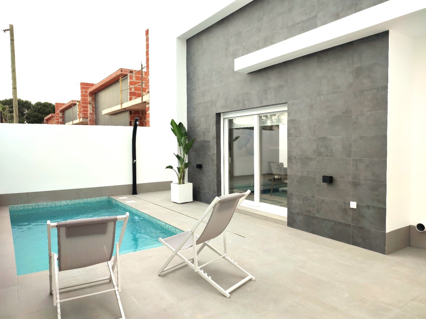 Mała inwestycja parterowych willi w Balsicas. Domy wyposażone są w sprzęt kuchenny (płyta ceramiczna, piekarnik, okap, lodówko-zamrażarka i zintegrowana zmywarka), oświetlenie wewnętrzne i zewnętrzne (bez punktów dekoracyjnych), w pełni wykończone łazienki, kuchnia letnia na tarasie na dachu o powierzchni 91m2, aerotermia bojler wodny, wstępna inst...alacja klimatyzacji poprzez kanały powietrzne i prywatny basen o wymiarach 3x5m z oświetleniem punktowym i prysznicem na zewnątrz. Dostawę zaplanowano na maj 2025 r. Do lotnisk w Murcji i Alicante można dojechać odpowiednio w około 20 minut w przypadku Murcji i 1 godzinę w przypadku Alicante.