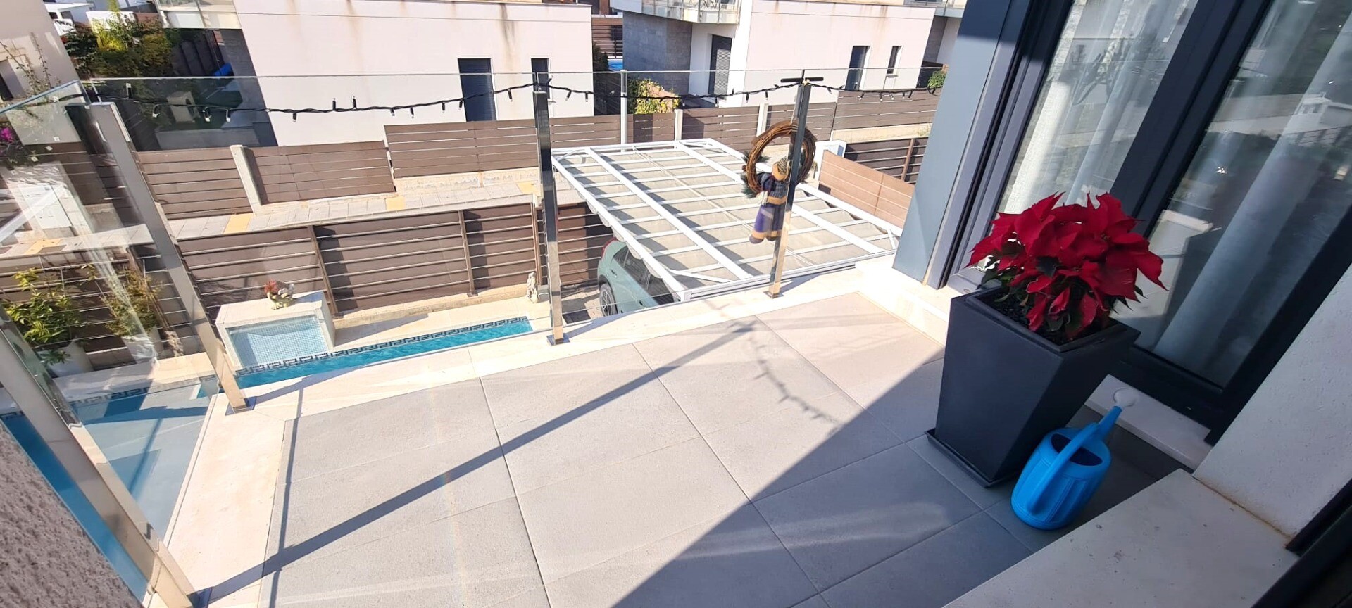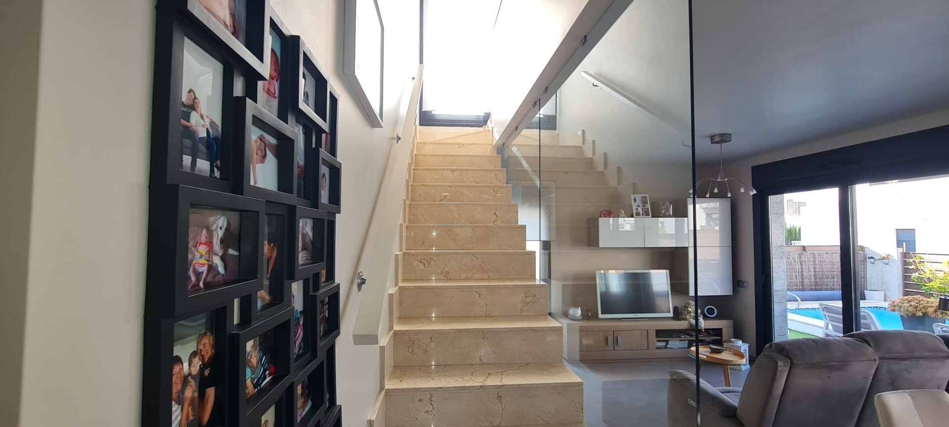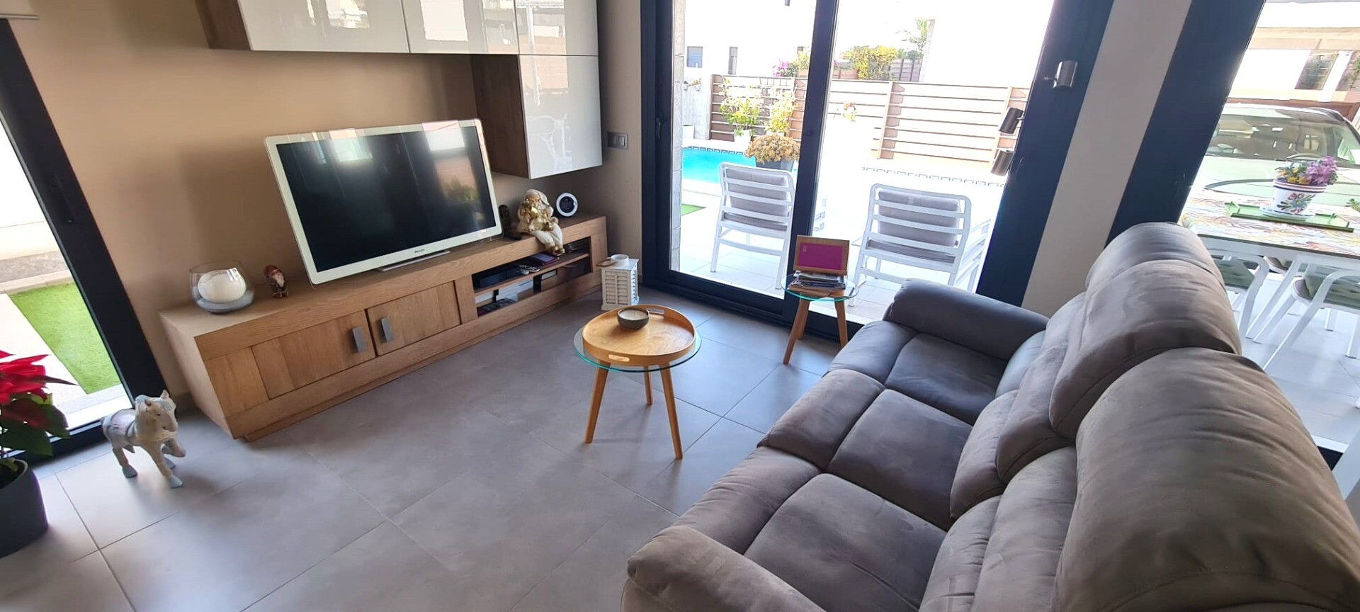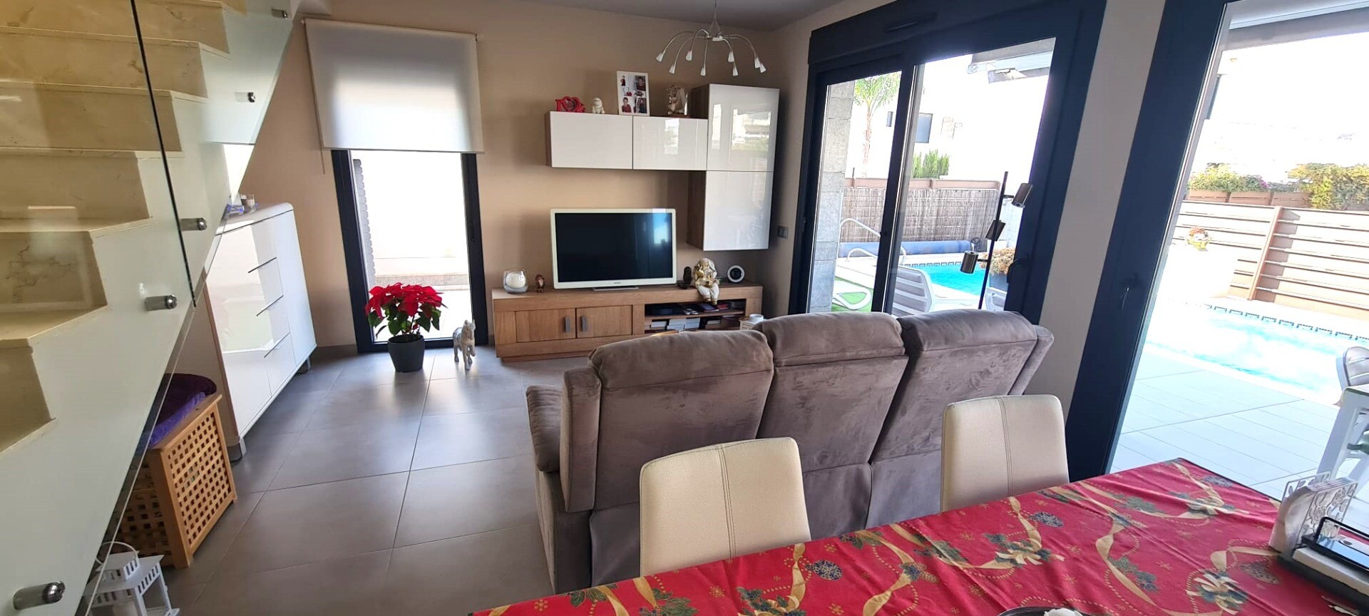 Ta niedawna willa w zabudowie bliźniaczej jest bardzo wyjątkowa ze względu na fakt, że została zbudowana tak, że tylne fasady stykają się ze sobą, co sprawia wrażenie, że jest to willa wolnostojąca na działce o powierzchni 217m2. Posiada podgrzewany basen o wymiarach 3,5 x 6,5 m. Dom ten jest również wyposażony w panele słoneczne, dzięki czemu płac...