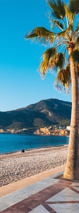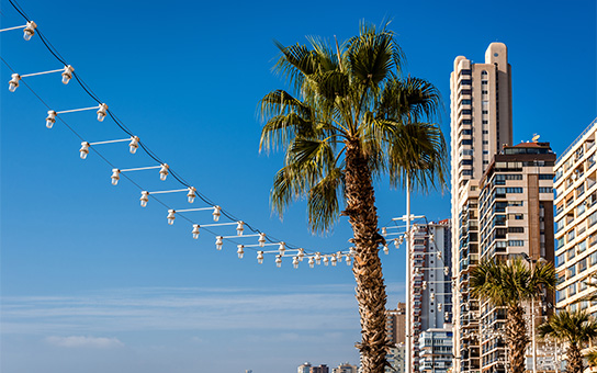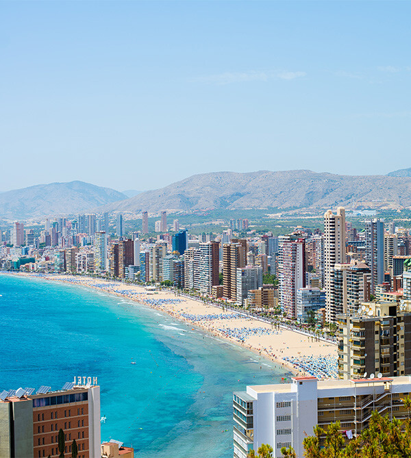 Benidorm leży między górami i cieszy się ciepłym klimatem. Średnia roczna temperatura wynosi 21,5°C, dzięki czemu będziesz cieszyć się łagodnymi zimami i ciepłymi latami.